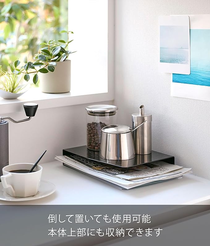 お好みの向きを選んでマグネットで簡単取り付け。散らかる物をまとめて収納できるプリントケース。マグネットは左右どちらの面にも貼り付けられるので、お好みの向きで使用できます。横向きに設置しても出し入れがしやすい形状です。立てて置いても使用可能。スリムなので隙間を有効活用できます。倒して置いて使用可能。本体上部にも収納できます。スチール製なのでメモなどを貼り付け可能。