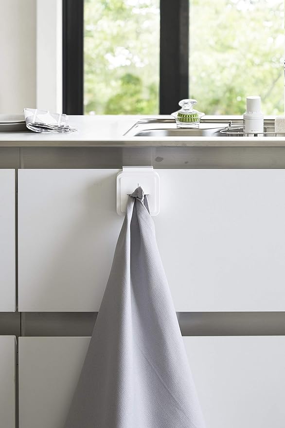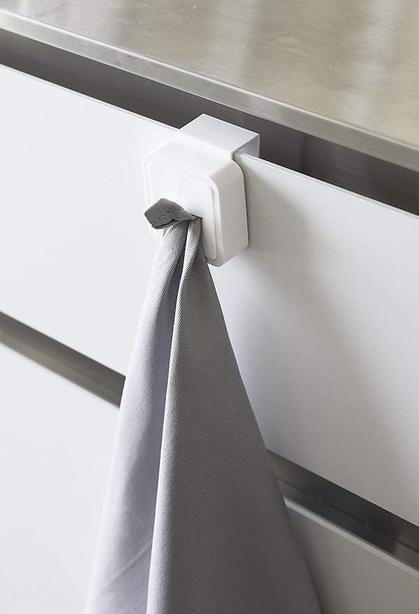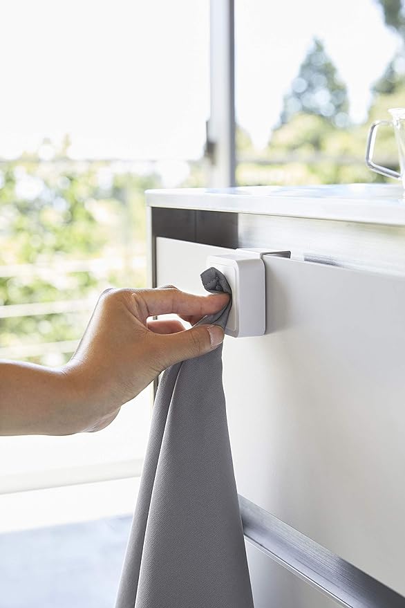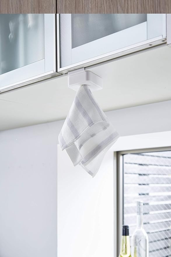 シンク扉に簡単取り付け。タオルや布巾を指で差し込むだけのタオルホルダー。戸棚下にも取り付け可能。