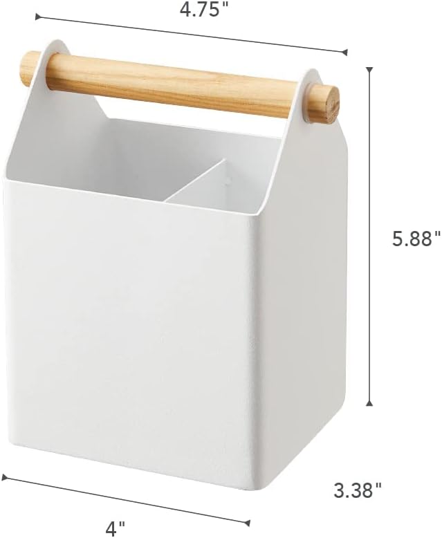 仕切りがあるから分けて収納できる木製ハンドル付きのナチュラルなデザインのペンスタンド。
