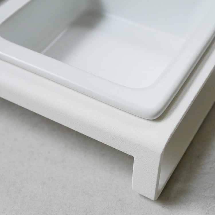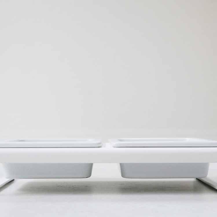 インテリアに違和感なくお洒落に馴染むペットフードボウル&スタンドのご紹介です。フードとお水・2種類のフードなど、2つのボウルをスタイルにあわせて自由にお使いいただけます。フードボウルにスタンドで高さを出すことでペットにはたくさんのメリットがあるんです。猫や小型犬にぴったりなサイズで、カラーは様々なインテリアに馴染むホワイトとブラックをご用意しました。