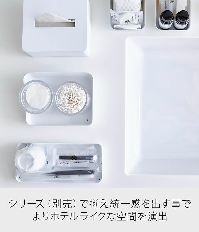 梨地の上質感とシンプルなフォルムが美しいシリーズ。設置面を傷付けにくいシリコンクッション付き。ホテルのアメニティーグッズ収納シリーズ。