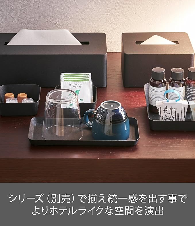 梨地の上質感とシンプルなフォルムが美しいシリーズ。設置面を傷付けにくいシリコンクッション付き。ホテルのアメニティーグッズ収納シリーズ。