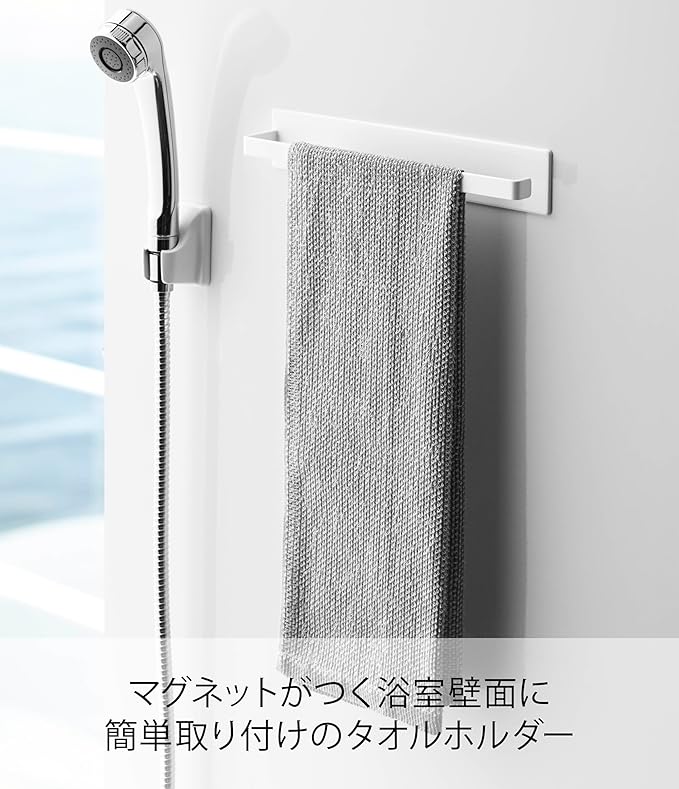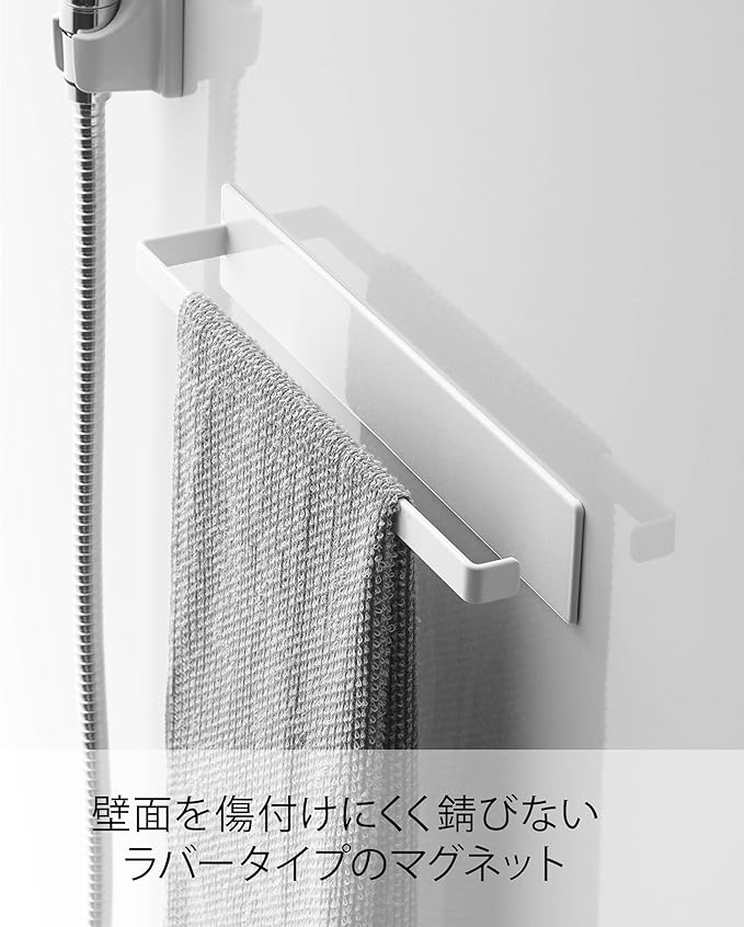 MIST マグネット バスルーム タオルハンガー ホワイト 浴室収納 タオル掛け フック付き