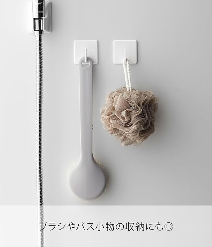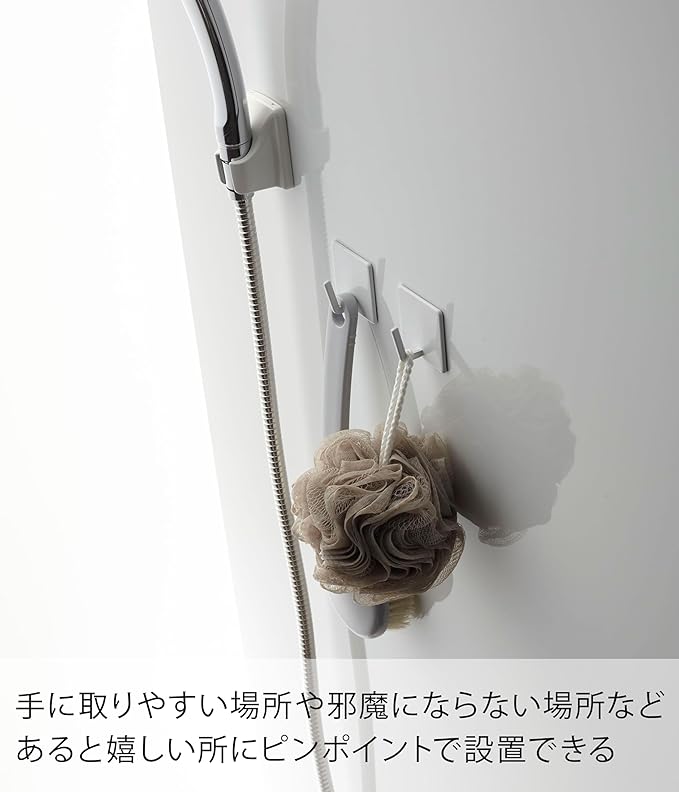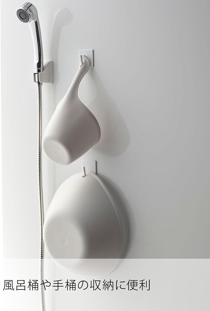 マグネットが付く浴室壁面に簡単取り付けのフック。ピンポイントで掛けたいところに。風呂桶や片手桶の収納に。ブラシやバス小物の収納にも。