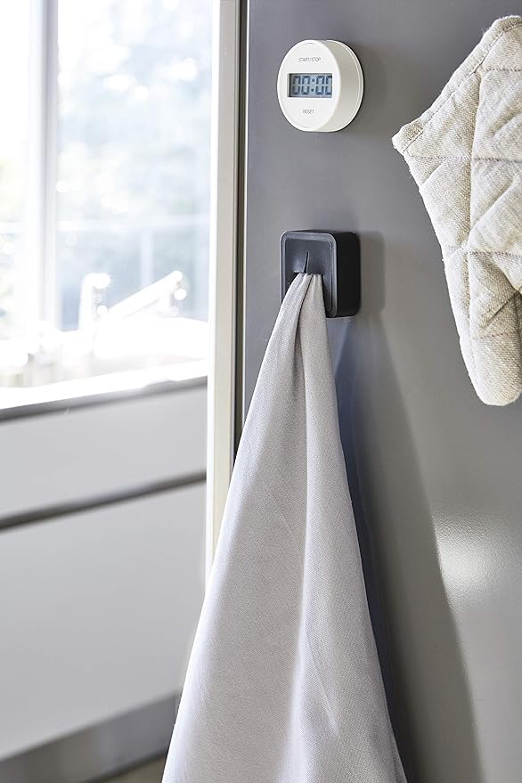 指で差し込むだけのタオルホルダー。冷蔵庫などにマグネットで簡単取り付け。タオルや布巾を指で差し込むだけ。
