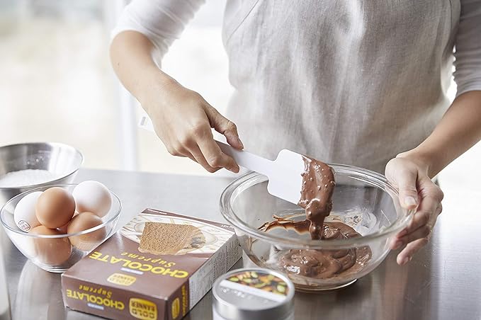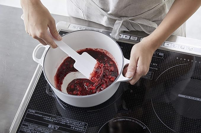 お菓子作りや料理の食材を混ぜたり、練ったり、裏ごししたりするのに便利なヘラ。先端が浮くので直置きにならずに清潔。ヘラがしなるので、ボウルに残った料理を簡単に集められ、きれいにすくい取れます。シリコーンでコーティングされているのでボウル・ナベなどを傷つけません。