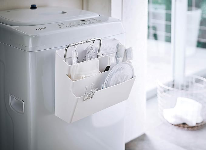 マグネットで洗濯機の正面や側面に付けるだけ。洗濯ネットや洗濯用小物などをまとめて一括収納。大容量で取り出しやすい3段収納ポケット。