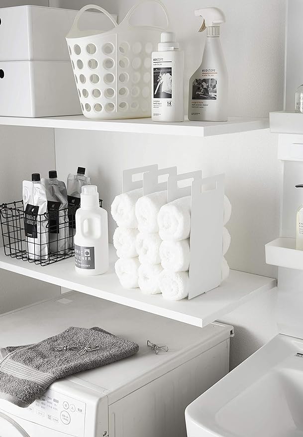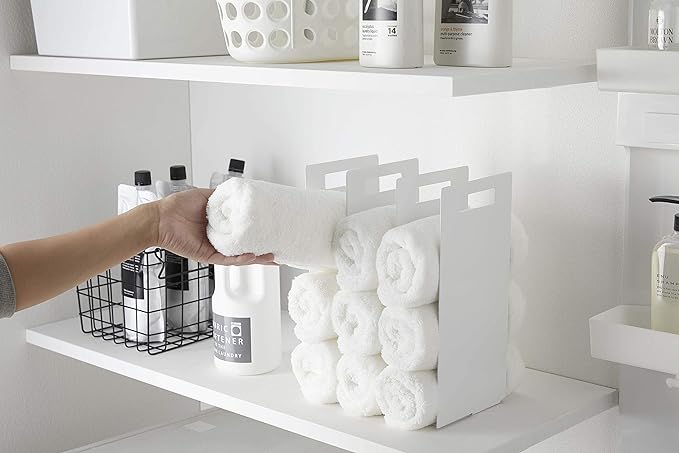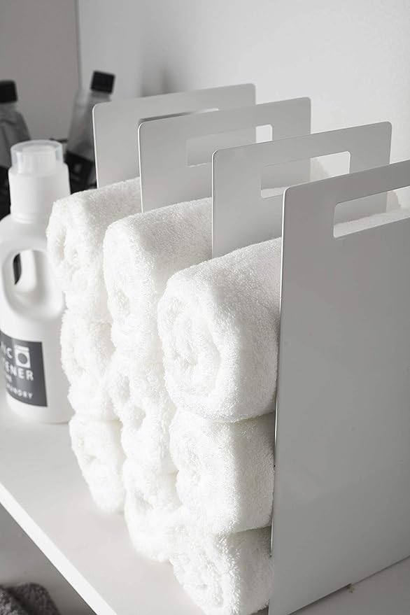 タオルのサイズに合わせて収納幅を調整。フェイスタオルからバスタオルまで収納可能。タオルをまとめてすっきりと収納できるから取り出しやすく便利。タオルの用途・種類・大きさによって見やすく分けられます。