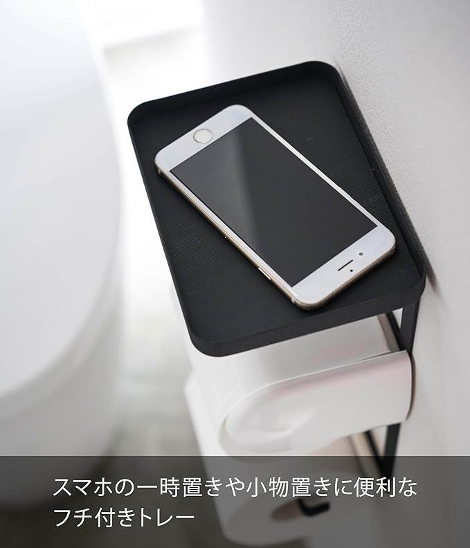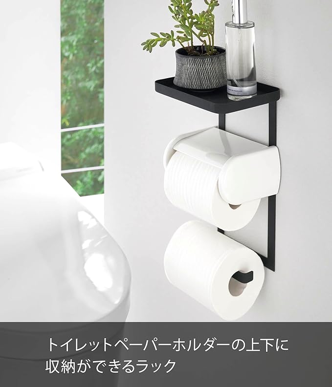 tower トイレットペーパーホルダー上 ラック 2段 ブラック トイレ 携帯置き 棚 収納