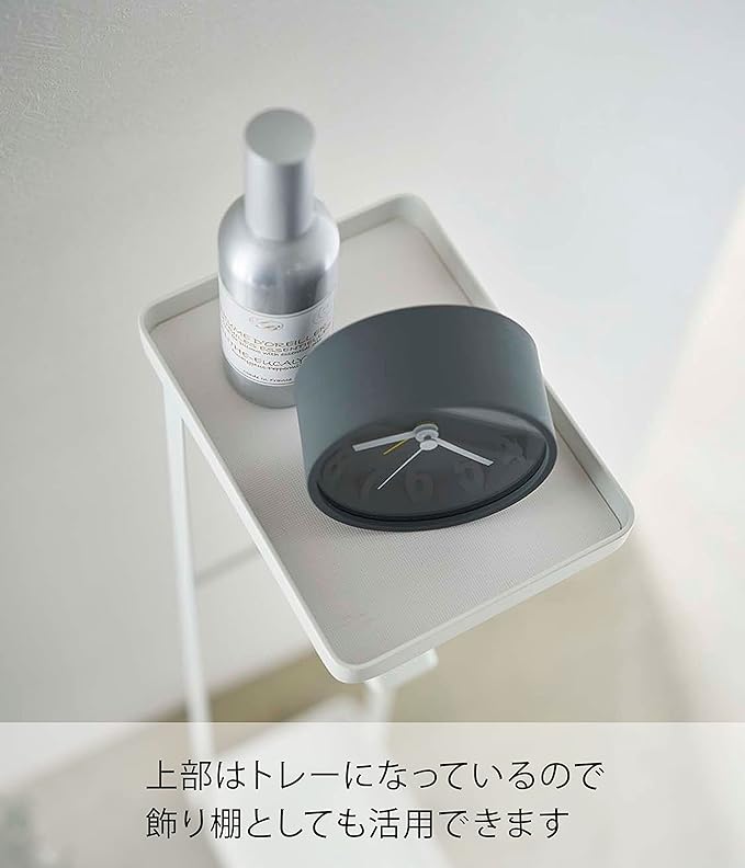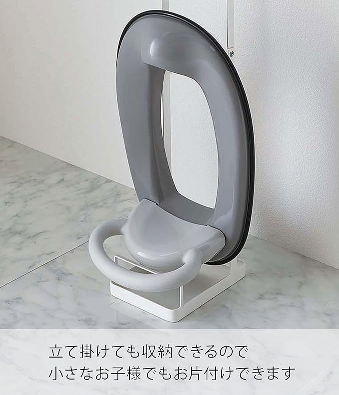 置き場所に困る補助便座をスッキリ収納できる補助便座スタンド。コンパクトなのでトイレ内でも邪魔になりません。立て掛けても収納できるので、小さなお子様でも簡単に収納できます。滑り止めマット付きトレーには、小物やおしりふきを置けます。補助便座を使用しなくなった後も、トイレットペーパースタンドとして使用できます。