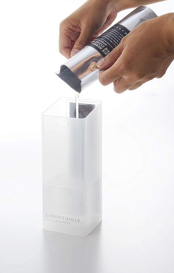 マグネットが付く浴室壁面に簡単取り付けのディスペンサーボトル。そのままポンプを押して液体を出せます。蓋が外れるのでお手入れや注ぐのが簡単。詰め替え用袋がそのまま入ります。