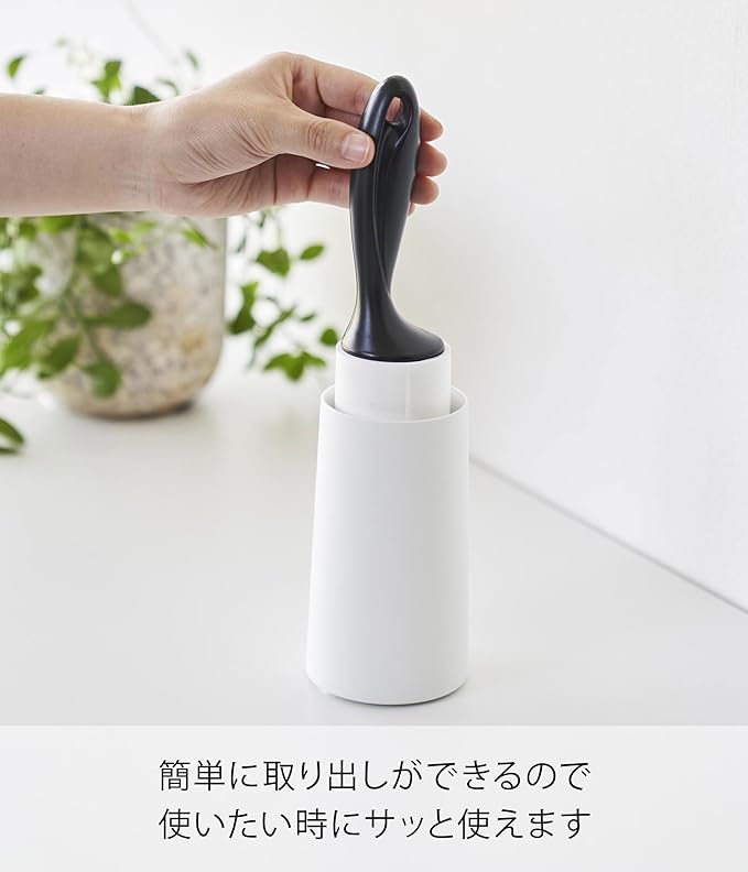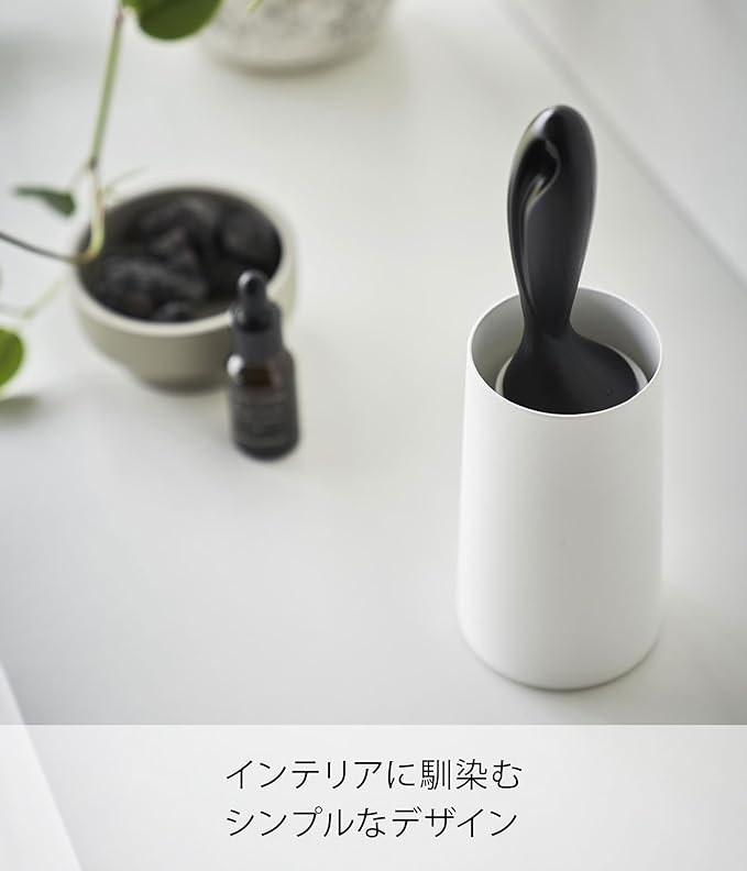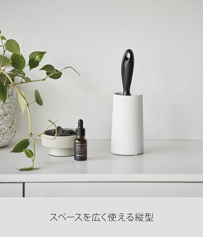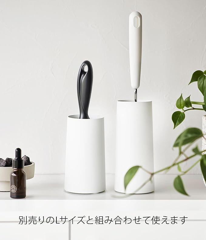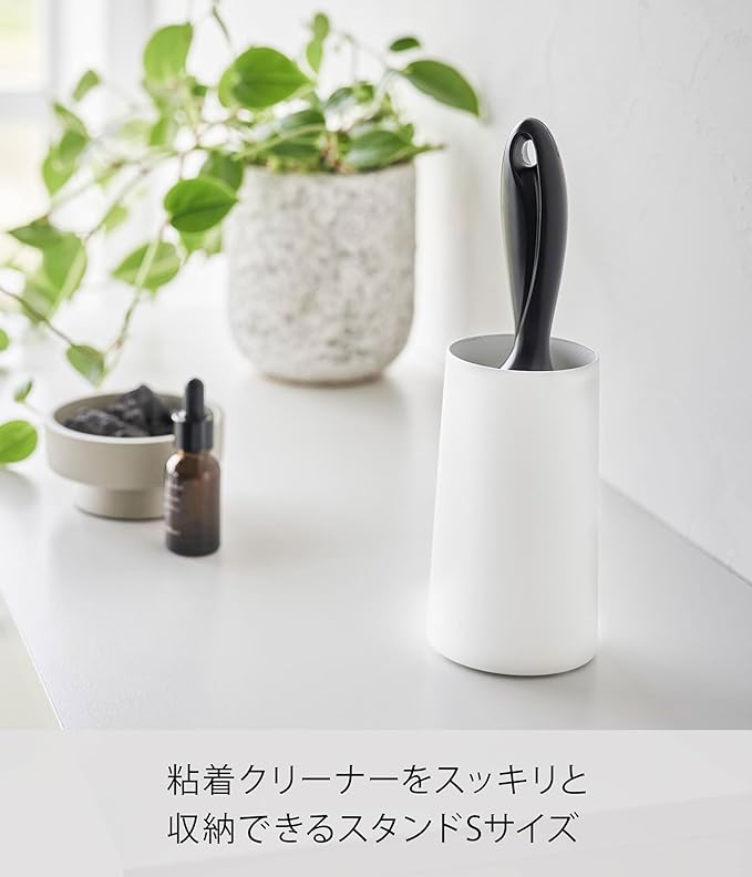 身だしなみも、インテリア性も、整える。お出かけ前後にサッと取り出して使用できる粘着クリーナースタンドです。玄関先にあると身だしなみを整えられて便利な衣類用粘着クリーナーをすっきりと収納。シンプルなデザインでインテリアになじみ、簡単に取り出しができます。玄関インテリアにマッチする、2色のカラーバリエーション カラーは、明るい印象のホワイトと、シックなブラックをご用意しました。どのおうちの玄関にも似合うシンプルなモノトーンカラーです。シューズクローク、壁紙、玄関小物に合わせてお好みのカラーをお選びください。立ててスマート収納。すぐに手に取れる利便性も◎ 衣類についたホコリや髪の毛、ペットの毛などをササっと取り除くのに便利な粘着クリーナーをスマートに収納します。立てて保管するので場所を取らず、上向きになるハンドルは使いたいときにサッと手に取りやすいのが魅力です。スマートなフォルムと紛体塗装で上質感UP ゆるやかな円すい型のスタンドは生活感のある粘着クリーナーをスタイリッシュに収納します。こだわりの玄関インテリアを邪魔しないシンプルさが◎。来客があっても取り出すまで粘着クリーナーだとは気がつかれないはず。 お手持ちのクリーナーに合わせて選べるサイズ違い こちらは『粘着クリーナースタンド S 縦型』となり、高さは13.5cmです。お手持ちのクリーナーの高さをご確認のうえご使用ください。これよりも高さのあるクリーナーには『粘着クリーナースタンド L 縦型』をおすすめします。高さは17cmです。※こちらの商品は『粘着クリーナースタンド S 縦型』の商品となり、『粘着クリーナースタンド L 縦型』の商品は別売です。