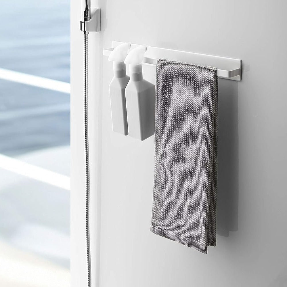 マグネットが付く浴室壁面に簡単取り付けができるタオルハンガーです。さらに、お掃除スプレーなども掛けて収納できるので、とても機能的な商品です。壁面を傷つけることなく設置できるので、とてもおすすめです。