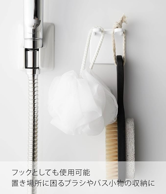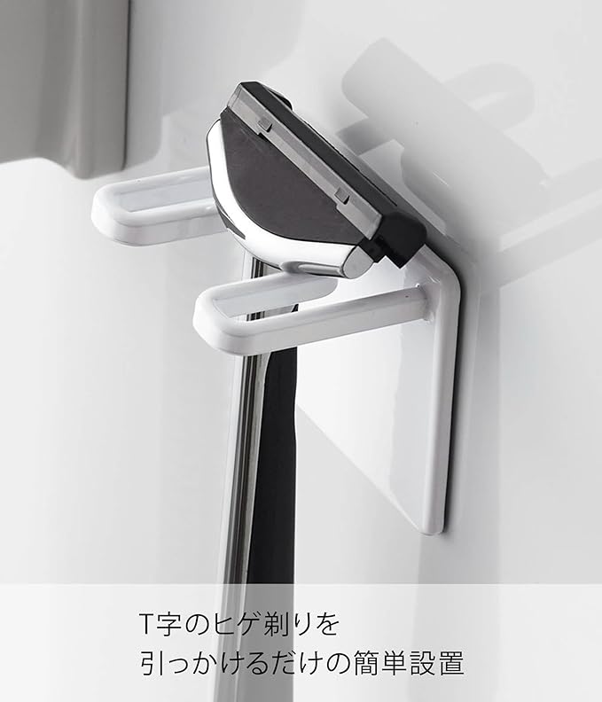 マグネットが付く浴室壁面に簡単取り付けのヒゲ剃りホルダー。T字のヒゲ剃りを引っかけるだけ。置き場所に困るブラシやバス小物の収納に。
