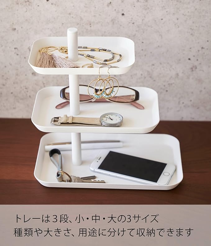アクセサリーをおしゃれに演出してくれる3段トレー。アクセサリーをはじめ、コスメや腕時計など毎日身に付ける小物の収納に最適です。