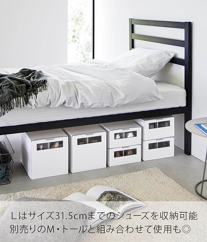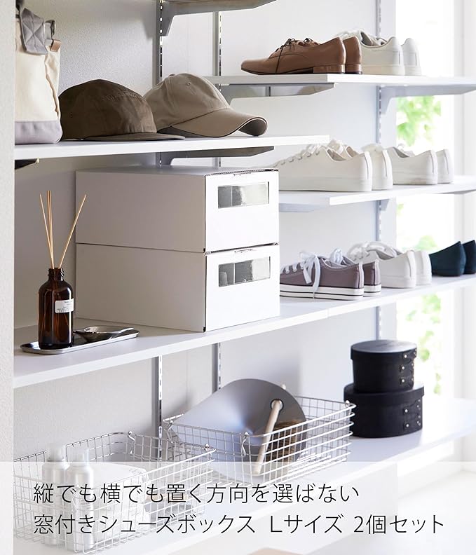 tower 窓付き シューズボックス 2個組 L ホワイト 靴 収納ボックス 収納ケース