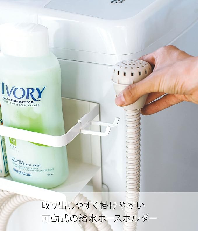 PLATE ホースホルダー付き 洗濯機横 マグネット ラック ホワイト 給水ホースが収納できる ランドリーサイドラック