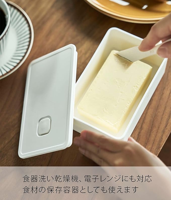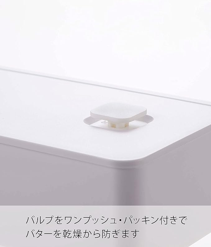 バルブとパッキン付きで密閉されるのでバターの乾燥を防いでくれる容器。食洗器、電子レンジにも対応。バルブをワンプッシュで簡単密閉。バターを乾燥から防ぎます。食材の保存容器としても使えるバターケース。パーツはすべて分解して洗えます。