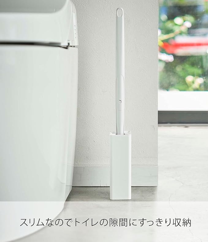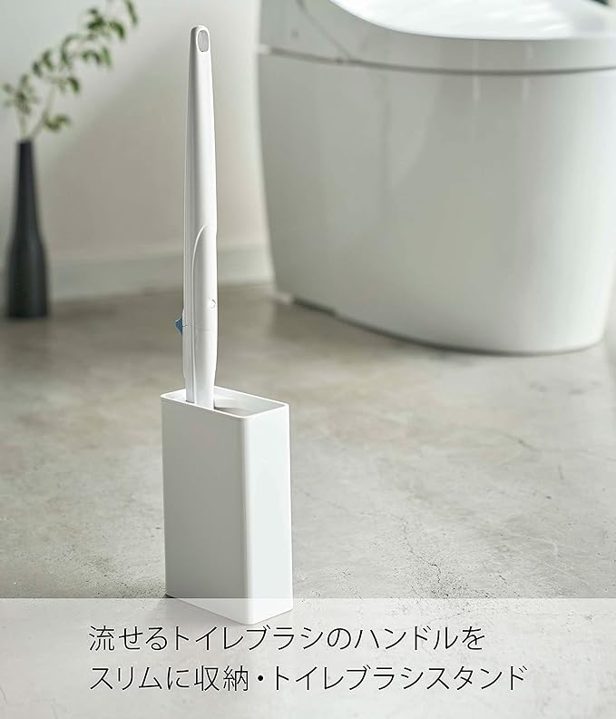 流せるトイレブラシのハンドルをスリムに収納。流せるトイレブラシのハンドルがピッタリフィット。トイレの奥側にすっきり収納。蓋が外れるのでお手入れも簡単。