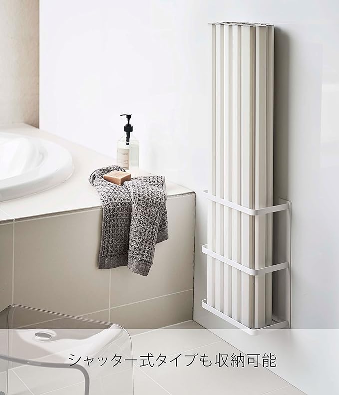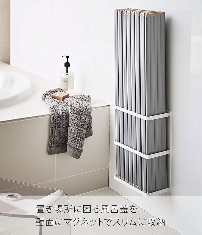 MIST マグネットバスルーム折り畳み風呂蓋ホルダー ホワイト 水切れが良い シャッター式タイプも収納可