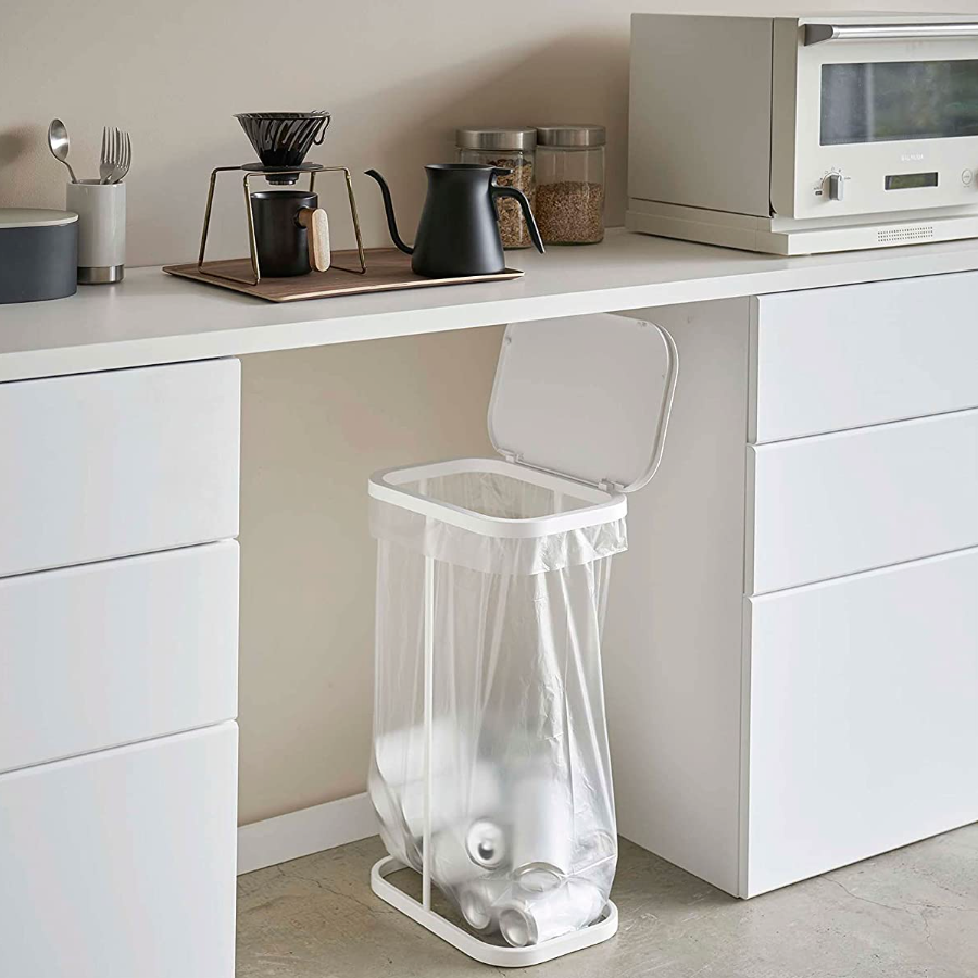 中身が見えるスタイリッシュなゴミ箱です。蓋が横に開くのでパントリーや食器棚下スペースに収納可能です。ペットボトルや空き缶などの分別に便利です。
