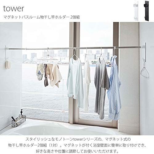 tower マグネットバスルーム物干し竿ホルダー2個組 ブラック