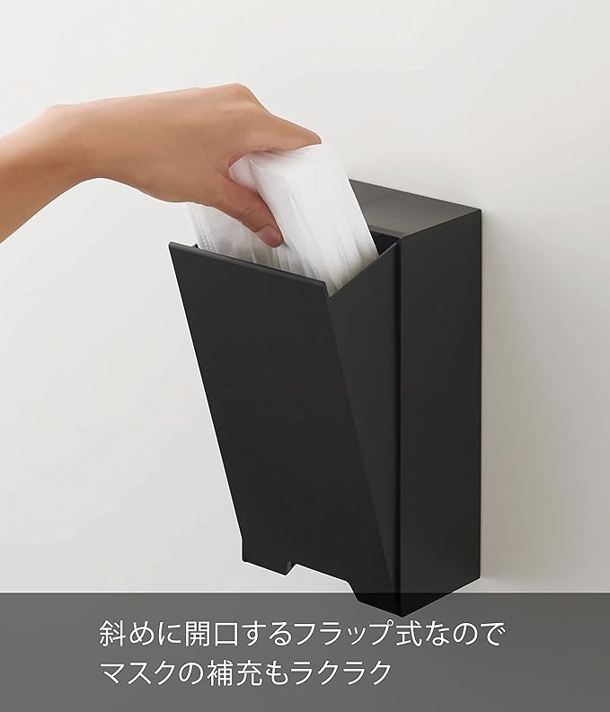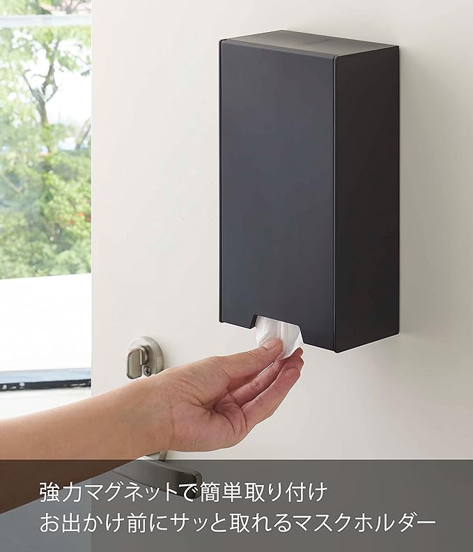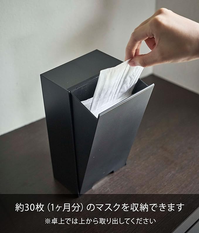 強力マグネットでドアがマスクの収納スペースに。お出かけ前にサッと取り出せるマスクホルダー。斜めに開口するからマスクの補充も簡単に行えます。約30枚のマスクを収納できます。並べて置けば、子供用・大人用と種類の違うマスクを整理して収納できます。玄関のカウンターに置いて使用できます。置いて使用する場合は斜めに開けて上からマスクを取り出してください。