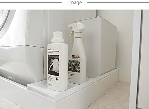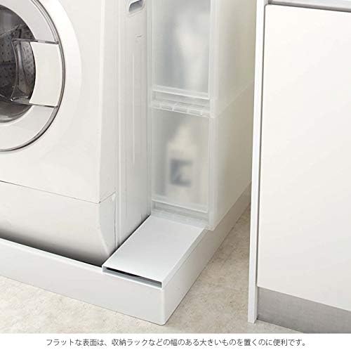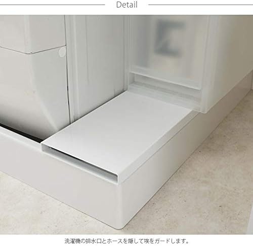 防水パンの上に置くだけの簡単設置。洗濯機の排水口とホースを隠してホコリもガード。その上を有効活用できるラックです。両面仕様だから、収納するものや用途に合わせて変えられます。