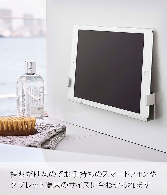 MIST マグネットバスルームタブレットホルダー ホワイト 挟んで固定 様々なサイズに対応可