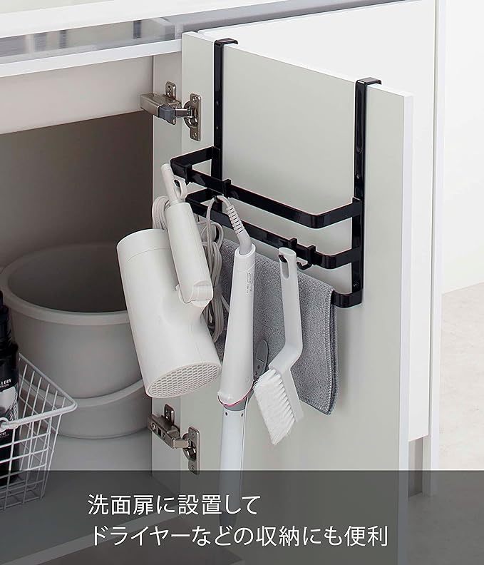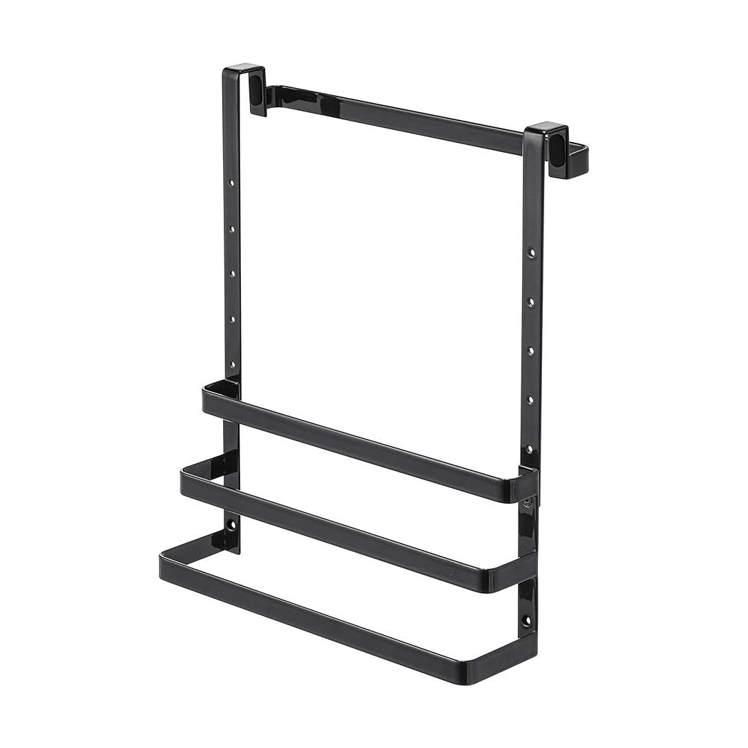 tower シンク扉ゴミ袋ホルダー タオルハンガー付き ブラック 2way 高さ調節可能 扉収納 フック付き
