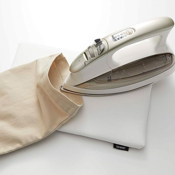 ミニハンカチやアップリケの取り付けなど、わざわざアイロン台を出すまでもないちょっとしたアイロンがけにぴったりなサイズ感のアイロンボード。コンパクトなサイズなので本棚やファイルケースにも収まり、置く場所も選びません。裾上げなどの折り目付けやネームタグやアップリケの接着に。
