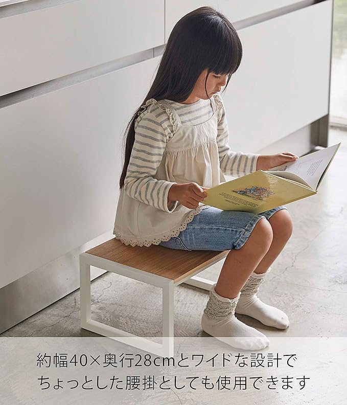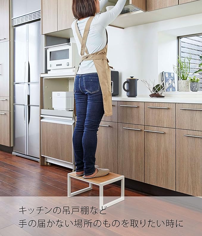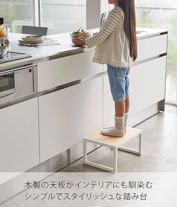 高くて届かなかったところにしっかり届くスタイリッシュな踏み台。ワイドな天板だから小さなお子様でも、安心してキッチンのお手伝いができます。木製の天板がインテリアにも馴染むシンプルでスタイリッシュなデザイン。腰掛けとして靴の脱ぎ履き時にも便利。