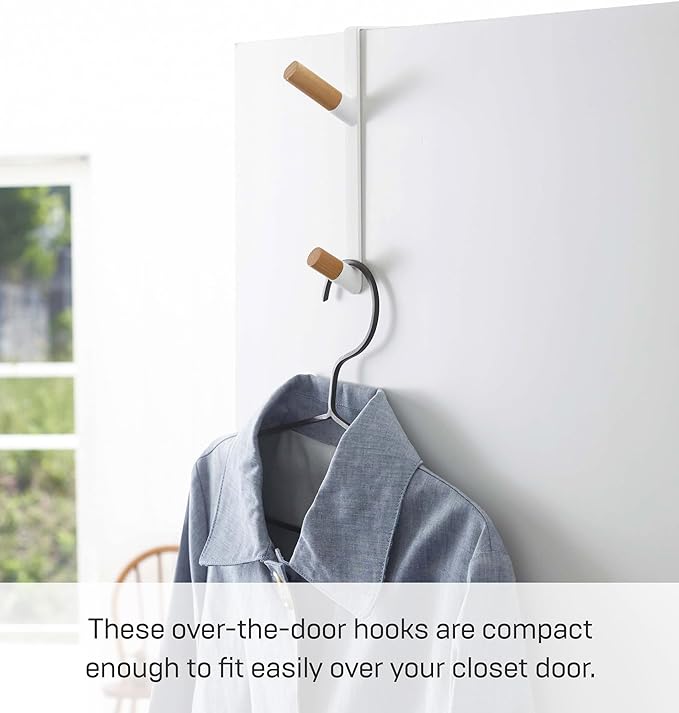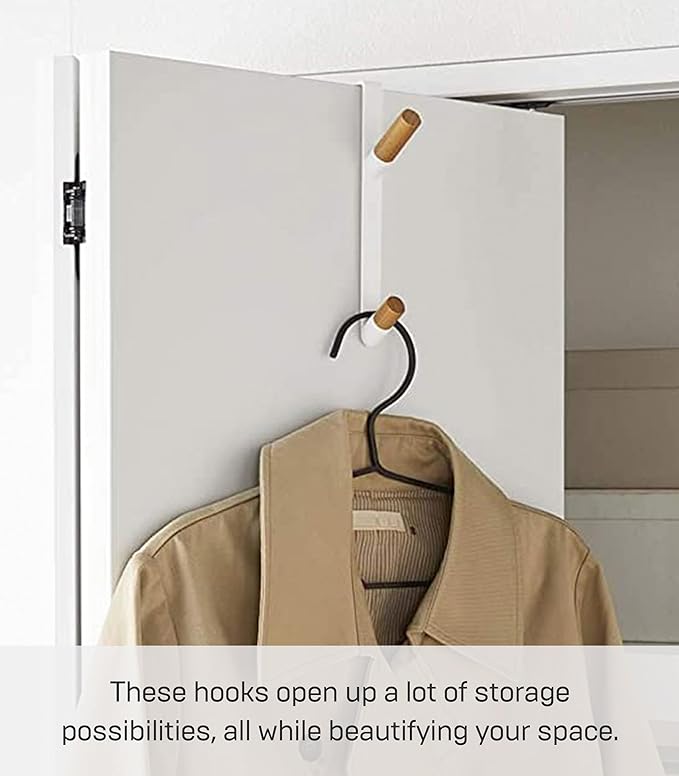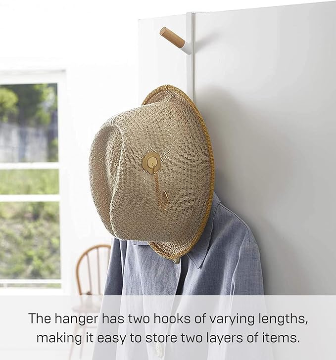 ドアや折れ戸に簡単取り付け。ハンガーや帽子、バッグなどをサッと掛けられるドアハンガー。木の質感が上品なドアハンガーです。コンパクトなので、取り付けたままでも気になりません。