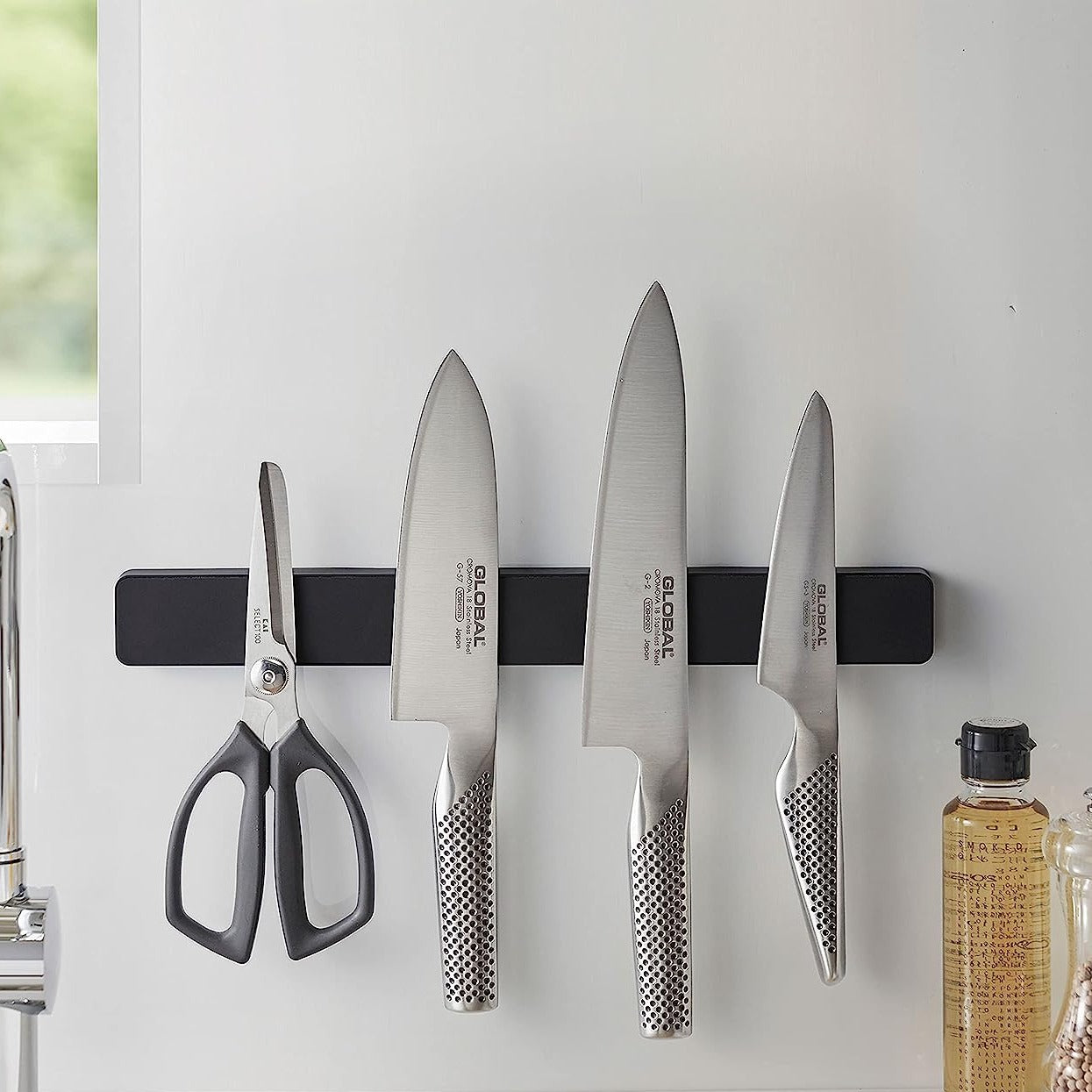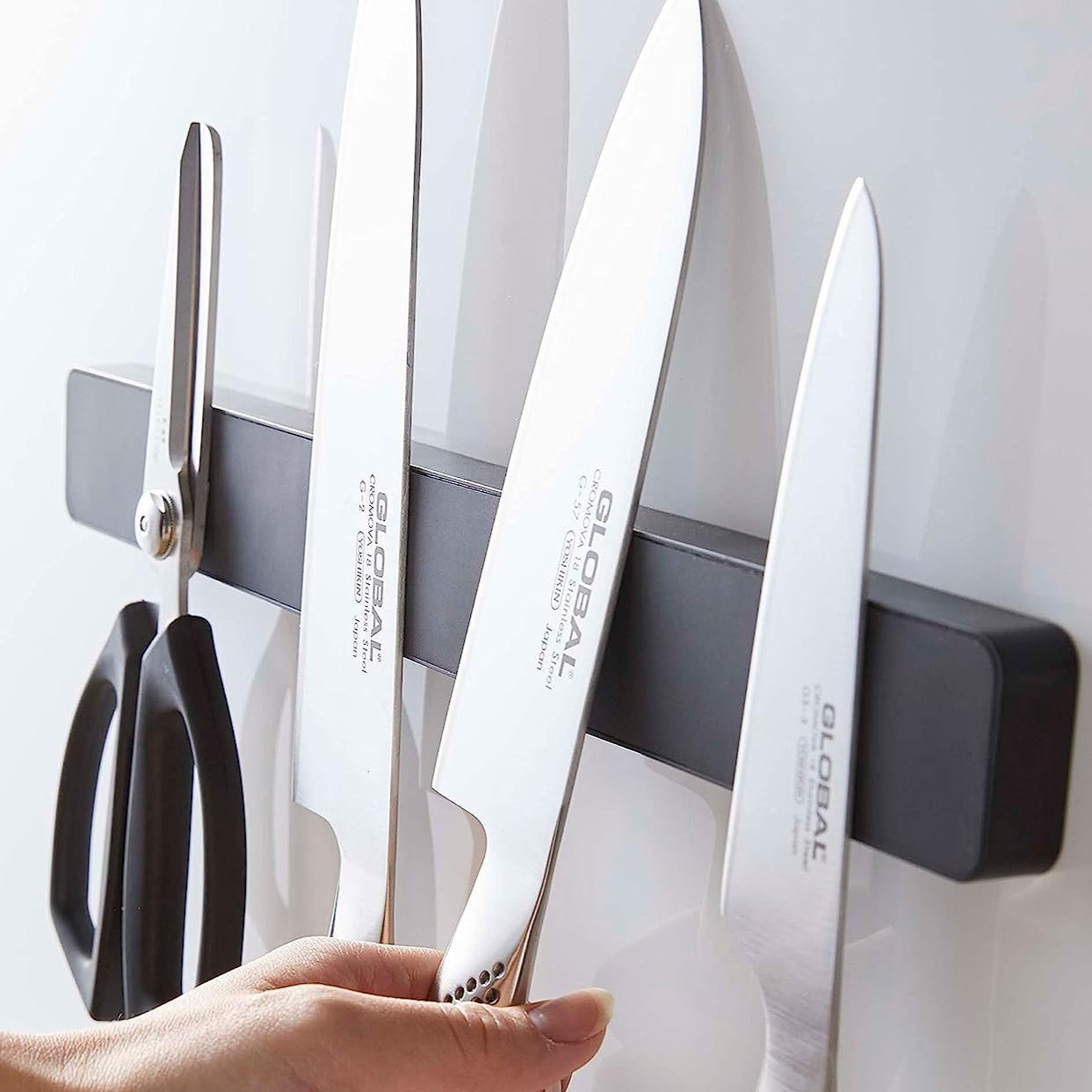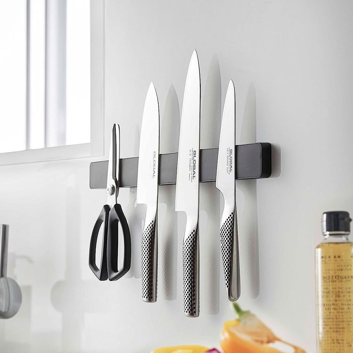 使いたい包丁が手に取りやすく、収納できるマグネット式の包丁ホルダーです。マグネットがつく壁面に設置ができます。刃を傷つけずに包丁を収納できるのが魅力です。また、付属の木ネジ・両面テープを使って鉄壁面以外にもに取り付けが可能です。
