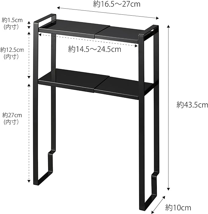 tower トイレキャビネット中伸縮ラック2段 ブラック 省スペース収納