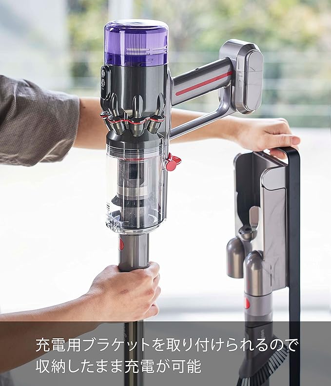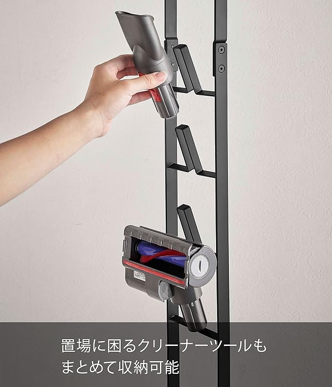 壁に穴を開けずにコードレスクリーナーをスリムに収納。