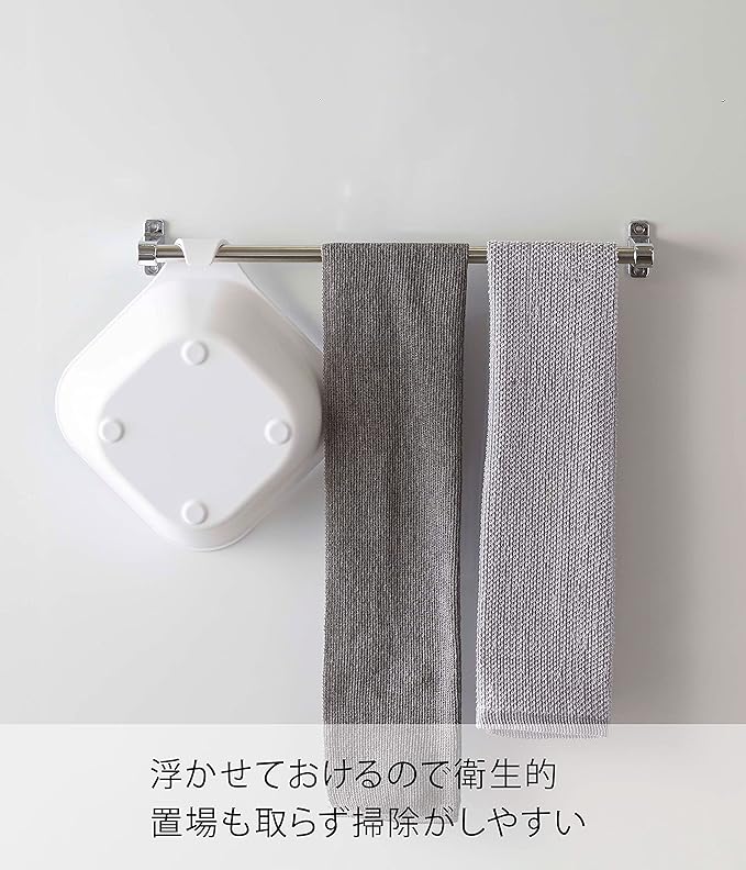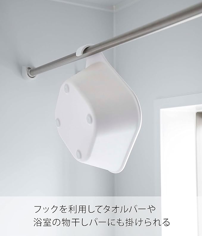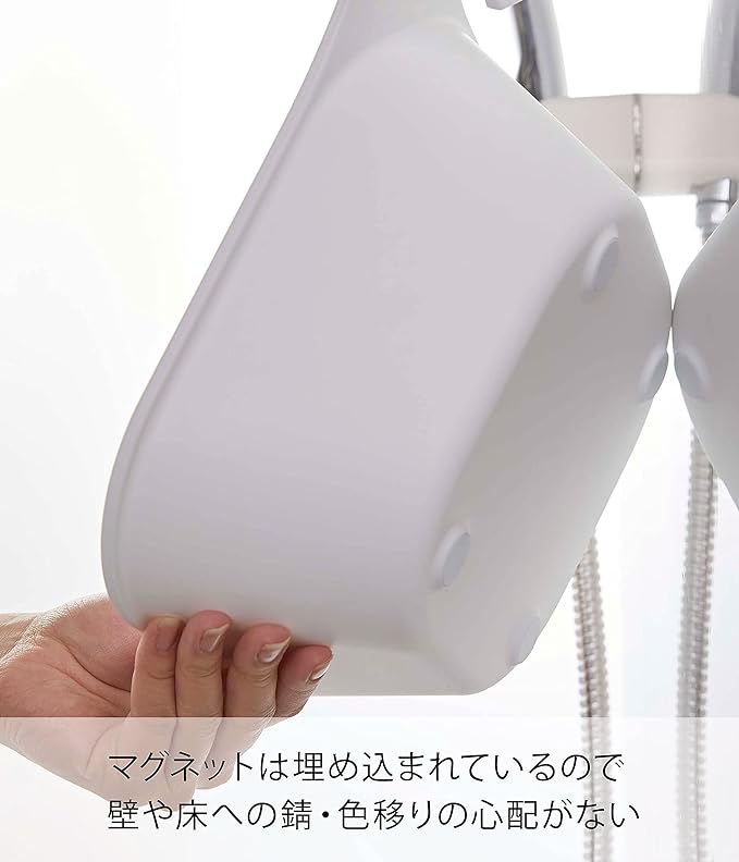 マグネットで浴室壁面に浮かせて収納できるから衛生的。浴室の扉のハンドル・タオルバーなどに掛けて乾燥。マグネットは埋め込まれているので錆や色移りもありません。シャワーフックに。浴室もの干し竿に。