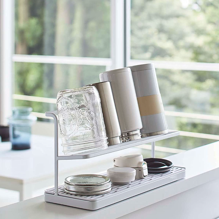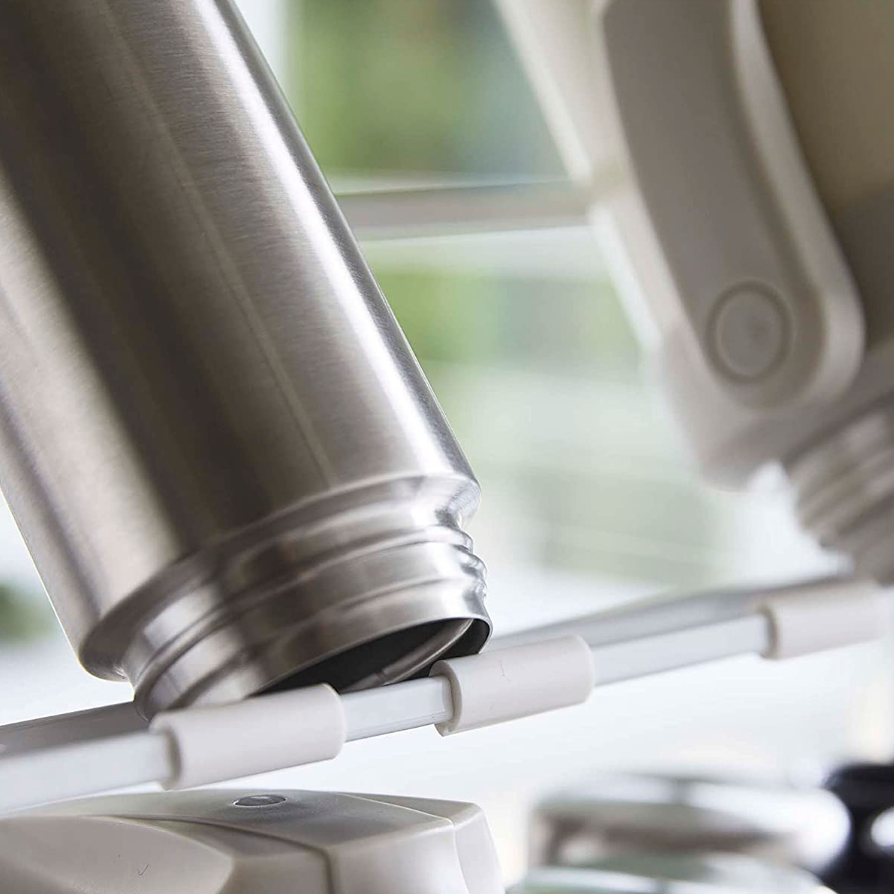 マグボトルからジャグボトルまで干せる大容量ボトルスタンドです。置き場所に困る2リットルサイズのジャグボトルが2個収納可能で、水切りとしても活用できます。