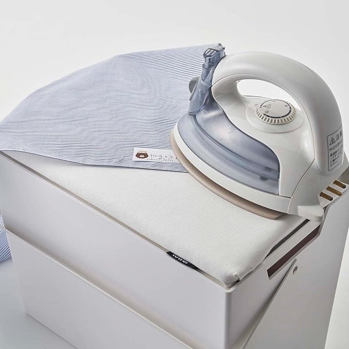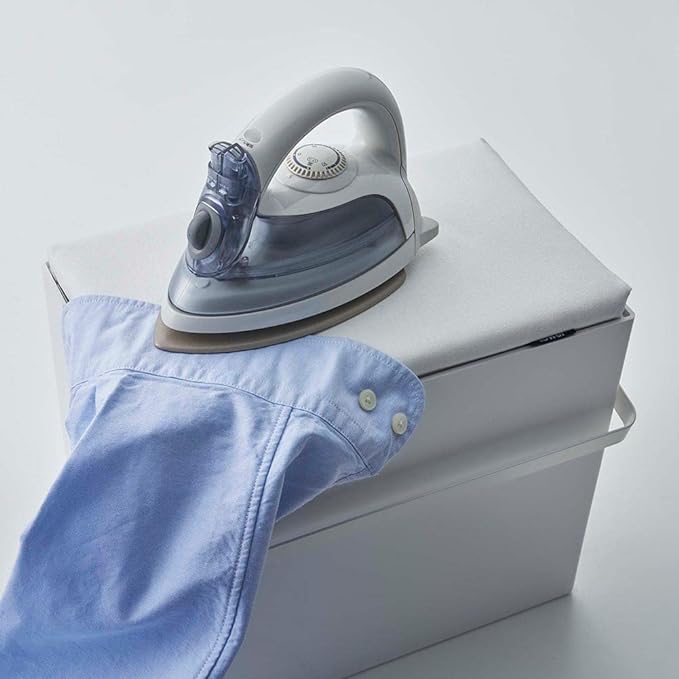 アイロン収納とアイロン台がこれ一つに。省スペースで活躍するアイロン収納ケースアイロン収納とアイロン台が一つになった、画期的なアイロン収納ケースです。ケースの蓋がそのままアイロン台として使えるので、わざわざアイロン台を用意する必要はありません。アイロン掛けはこれ一つ用意すれば完結します。ケースはコンパクトに見えてとっても大容量。アイロン本体以外にも、アイロン用のミストや衣類用スプレーも収納しておけます。ケース内側にはトレーが付いており、パッチや当て布など細かなアイテムも収納可能です。空間に溶け込むシンプルなデザインで、出しっぱなしでも生活感を与えません。アイロンを片付けておくスペースに困っている方にもおすすめです。カラーはホワイト・ブラックの2種類カラーはホワイトとブラックの2種類があります。どちらもインテリアとなじむシンプルなカラーですから、部屋の雰囲気に合わせてベストなカラーを選んでください。アイロン作業がぐっとスムーズにアイロン収納とアイロン台が合体したこちらのアイロン収納ケースは、面倒なアイロン作業をサポートする便利なアイテム。アイロン台の準備を短縮できるので、いつでも手軽にアイロン掛けできます。アイロン台部分は幅33cmで、細かい部分のアイロン掛けにぴったり。サッと取り出してサッと片付けられるコンパクトさが魅力です。場所を取らないサイズ感なので、省スペースでスムーズにアイロン掛けができます。片手で簡単に持ち運べるハンドル付きアイロン掛けできる蓋付きアイロン収納ケースは、便利なハンドル付き。片手が塞がっているシーンでも、ハンドルをひょいと持ち上げて簡単に持ち運びできます。手軽にアイロンの用意ができるから、面倒なアイロン掛け作業のハードルがぐっと下がりそうです。当て布やパッチなどのアイテムを一緒に入れて持ち運べば作業がより簡単に。スピーディーにアイロン掛けできます。アイロン以外の収納ケースとしても使えるシンプルな収納ケースは、アイロン本体以外の収納にもぴったり。アイロン時に使うミストや糊付けスプレーなど、高さのある大きなアイテムも収納しておけます。ケース内にはトレーも付いているので、細かなアイテムも収納可能。パッチやアイロンミトンなど、散らかりがちなアイテムもきれいに収納しておけます。整理整頓しやすいケースで使いたい物がすぐに見つかるから、いざアイロン掛けをする際に「あれ、どこいった?」となりません。