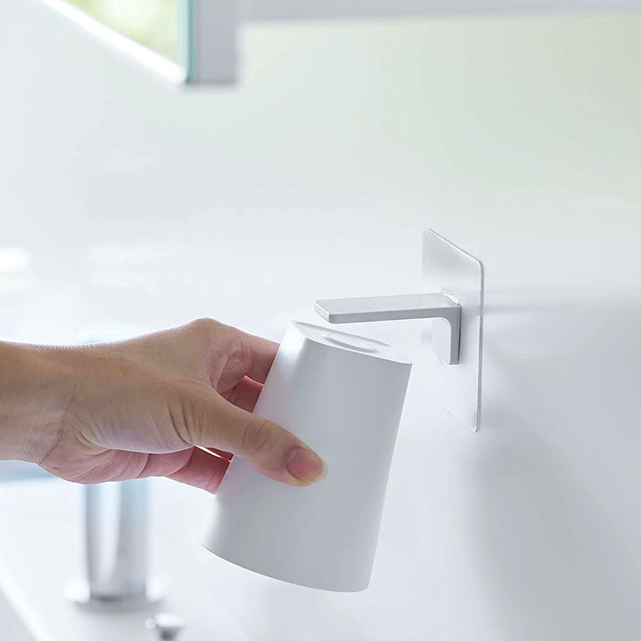 浮かせて清潔に収納できる、マグネット付きタンブラー 水回りで使うタンブラーをいつでも清潔に保っておけるマグネット付きタンブラー。底面にマグネットを内蔵することによって、台の上に"置く収納"ではなく、宙に"浮かせる収納"が可能になりました。"浮かせる収納"なら、タンブラーや洗面台の水滴によるヌメりやカビを予防でき、タンブラー内の水気もしっかりと切ることができます。収納の土台となるフックはフィルム式で取り付け簡単。特別な準備や作業が必要なく、すぐに使い始めることができるアイテムです。曲線と直線を組み合わせたシンプルでスタイリッシュなデザインは、インテリアにこだわりがある方や空間に生活感を出したくない方にもおすすめ。カラーはホワイトとブラックの2色 マグネット付きタンブラーのカラーバリエーションは、ホワイトとブラックの2色。どちらもマットな質感と落ち着いた雰囲気を持ち、どんなインテリアにもマッチします。使う人によってカラーを分けて使っても○。マグネット収納ならタンブラーの底がヌメらない。 水回りに置くタンブラーは、どうしても水気に晒されやすいもの。特に、タンブラーを置いた台とタンブラーの底の接着面には水気が溜まりやすく、放っておくとヌメりやカビの発生リスクが高まります。しかし、台に置かずに浮かせた状態でタンブラーを置いておくことができれば、ヌメりやカビの心配はなし。マグネット付きの底面を付属のフックにくっつけてタンブラーを逆さまに浮かせておけるので、内部の水切りもばっちりです。設置は簡単、壁を傷付けないので賃貸物件にも 浮かせておけるマグネット付きタンブラーの設置はごく簡単。付属のフックを取り付けたい壁面に貼り付けるだけです。ネジを取り付けたり組み立てたりする手間は必要ありません。また、この付属フックはフィルム式。壁を傷つけにくいので、賃貸物件にも安心して利用できます。マグネット対応の壁ならフィルムフックを使わなくてもOK ユニットバスなどマグネット対応の壁面であれば、付属のフィルムフックを使わなくてもOK。マグネットが入ったタンブラーの底面を直接壁に付けるだけで、好きな位置に浮かせて収納しておくことができます。お風呂で歯を磨く人には、その場でサッと使えるタンブラーがひとつあると便利ですね。