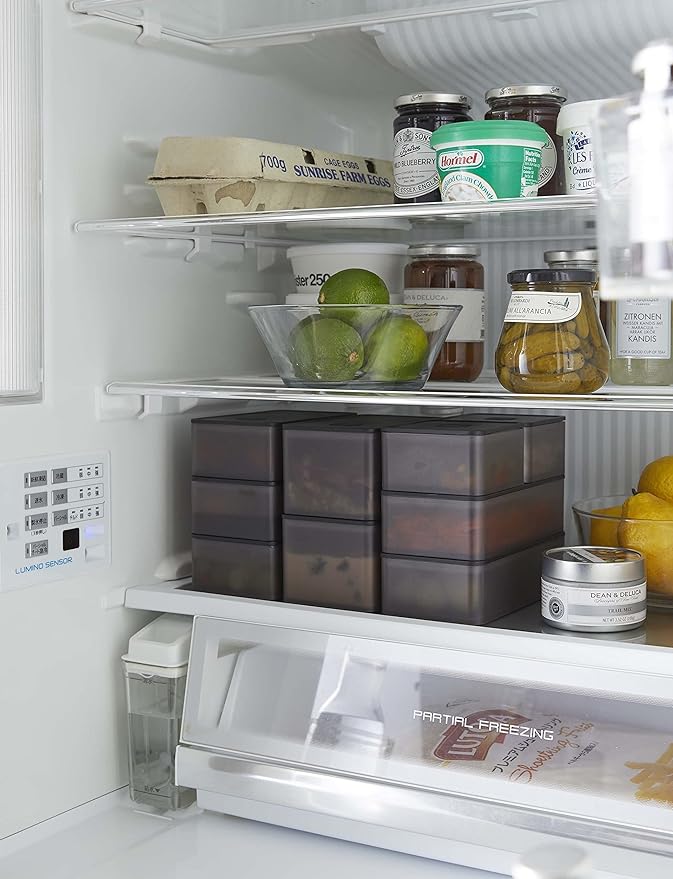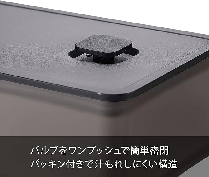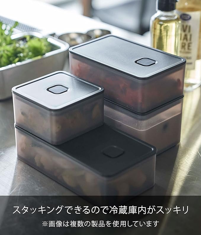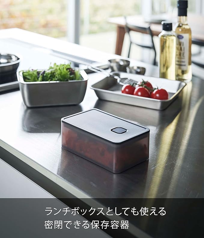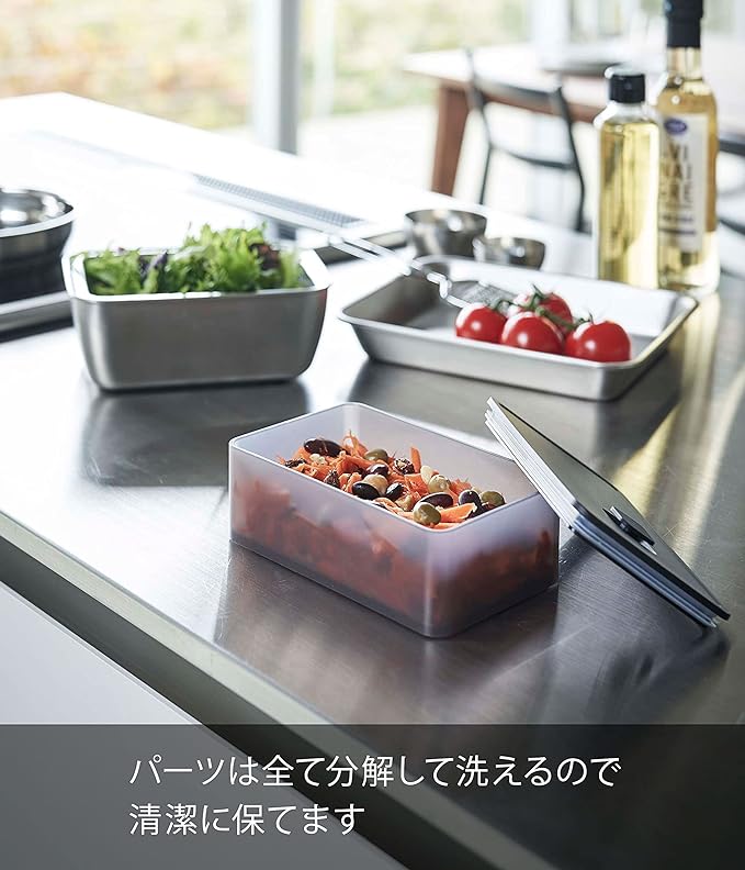 ランチボックスとしても使える食材の保存容器。食器洗い乾燥機、電子レンジにも対応。バルブをワンプッシュで簡単密閉。パッキン付きで汁もれしにくい構造。スタッキングできるので冷蔵庫内がスッキリ。冷蔵庫の中にきれいに積み重ねて収納できます。バルブをワンプッシュで簡単密閉。パッキン付きで汁もれしにくい構造。パーツはすべて分解して洗えます。