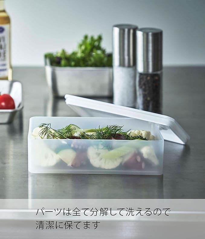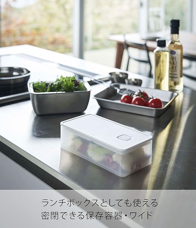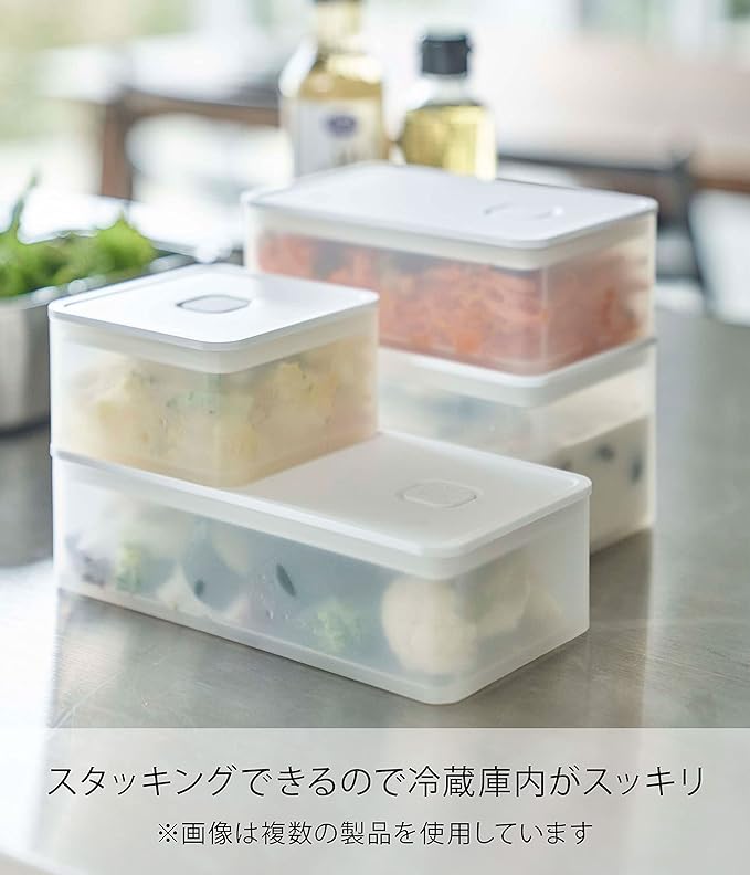 ランチボックスとしても使える食材の保存容器。食器洗い乾燥機、電子レンジにも対応。バルブをワンプッシュで簡単密閉。パッキン付きで汁もれしにくい構造。スタッキングできるので冷蔵庫内がスッキリ。冷蔵庫の中にきれいに積み重ねて収納できます。バルブをワンプッシュで簡単密閉。パッキン付きで汁もれしにくい構造。パーツはすべて分解して洗えます。