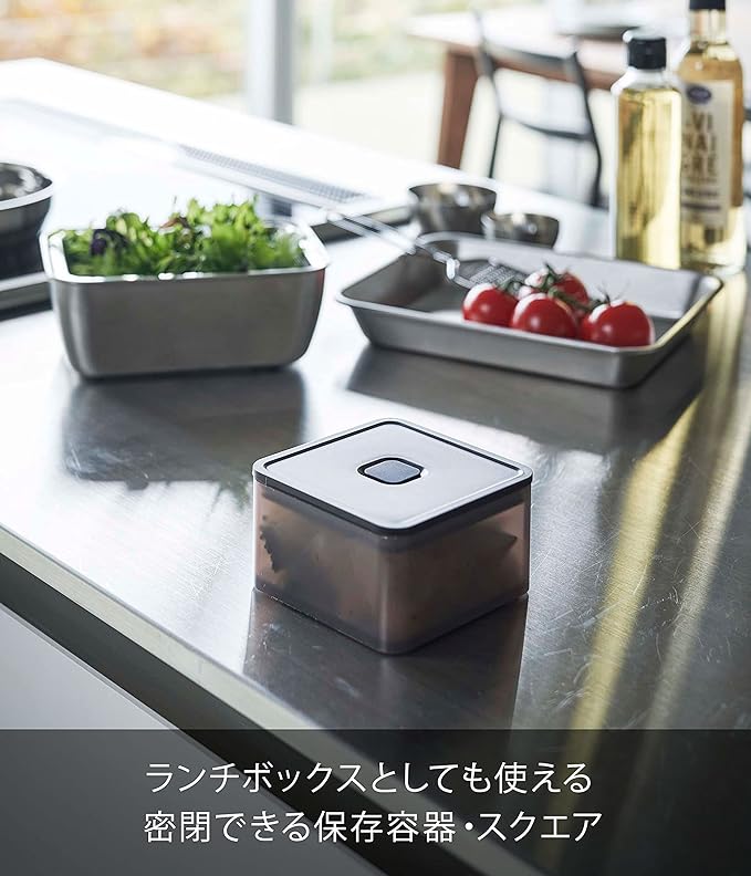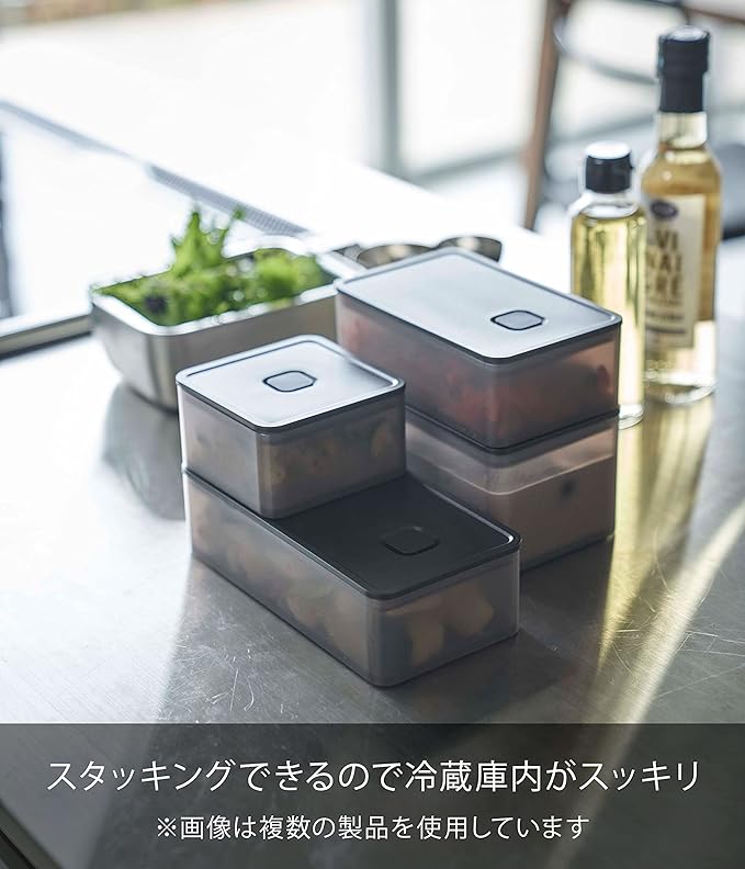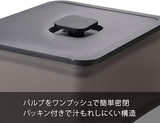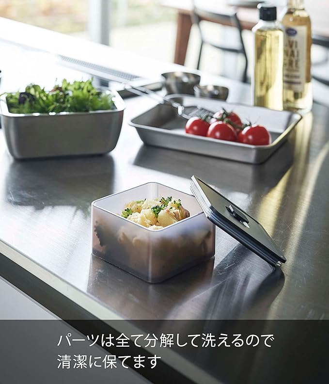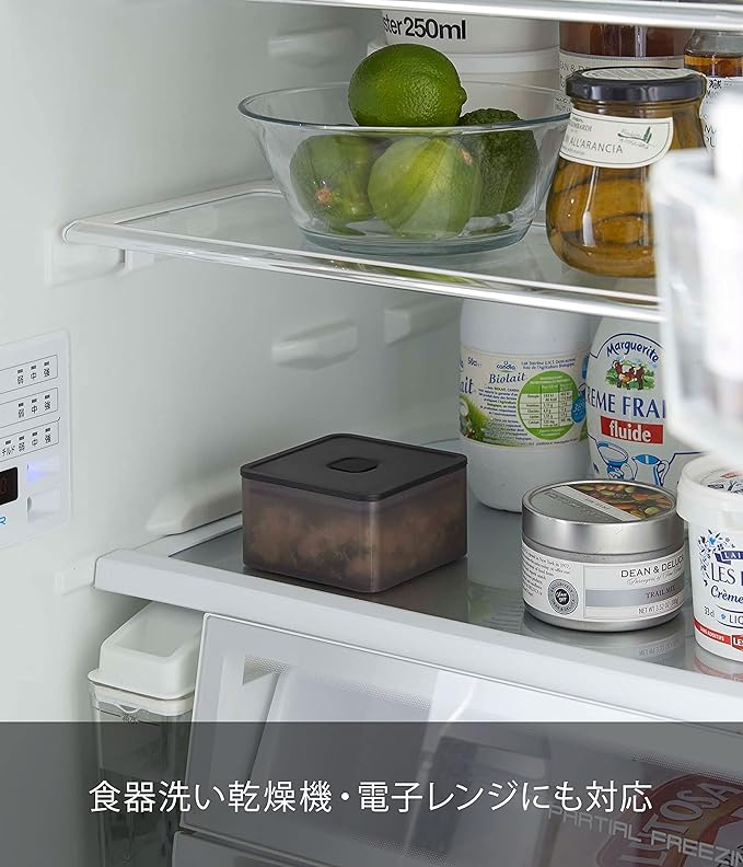 ランチボックスとしても使える食材の保存容器。食器洗い乾燥機、電子レンジにも対応。バルブをワンプッシュで簡単密閉。パッキン付きで汁もれしにくい構造。スタッキングできるので冷蔵庫内がスッキリ。冷蔵庫の中にきれいに積み重ねて収納できます。バルブをワンプッシュで簡単密閉。パッキン付きで汁もれしにくい構造。パーツはすべて分解して洗えます。