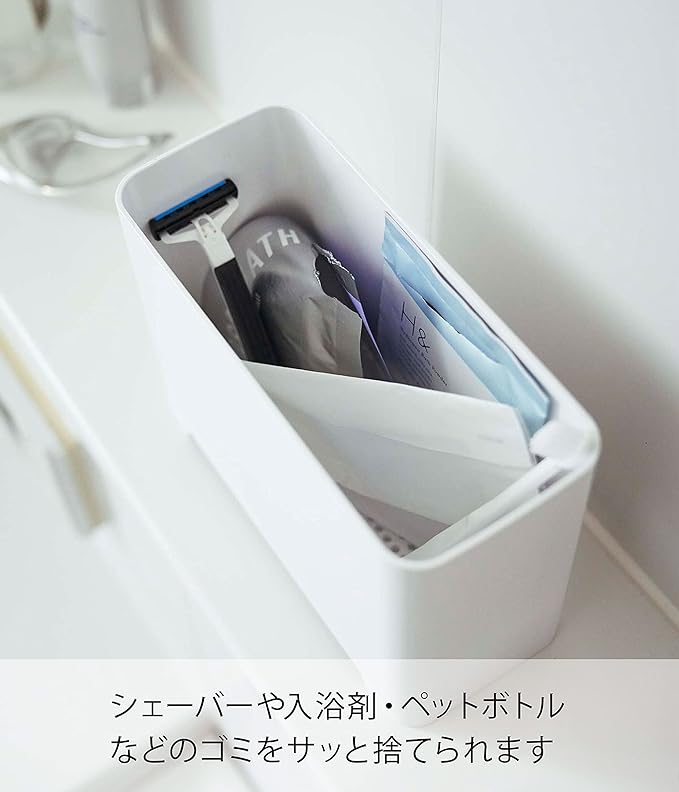 浴室壁面で出るシェーバーや入浴剤、ペットボトルなどのゴミをサッと捨てられる、便利なゴミ箱。