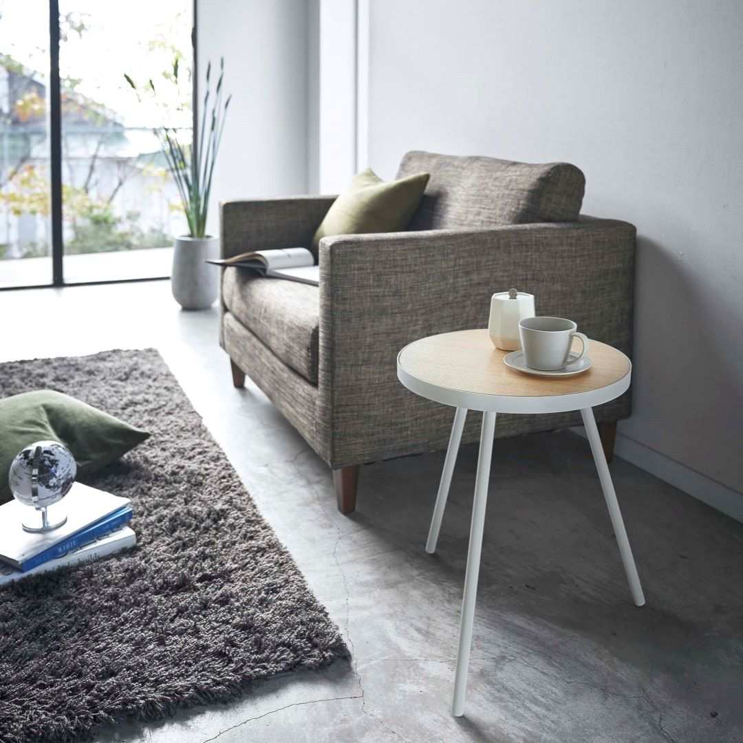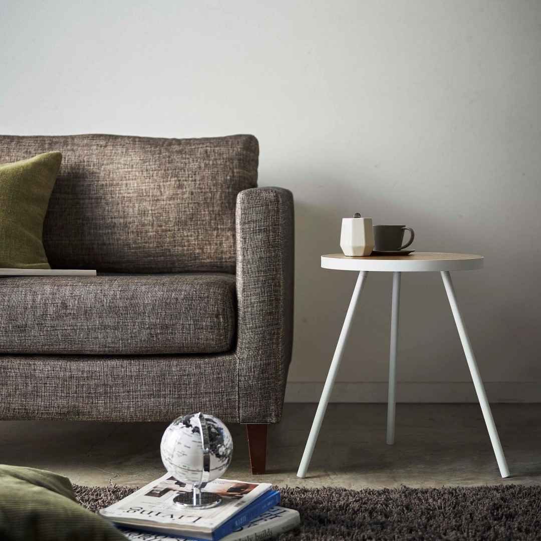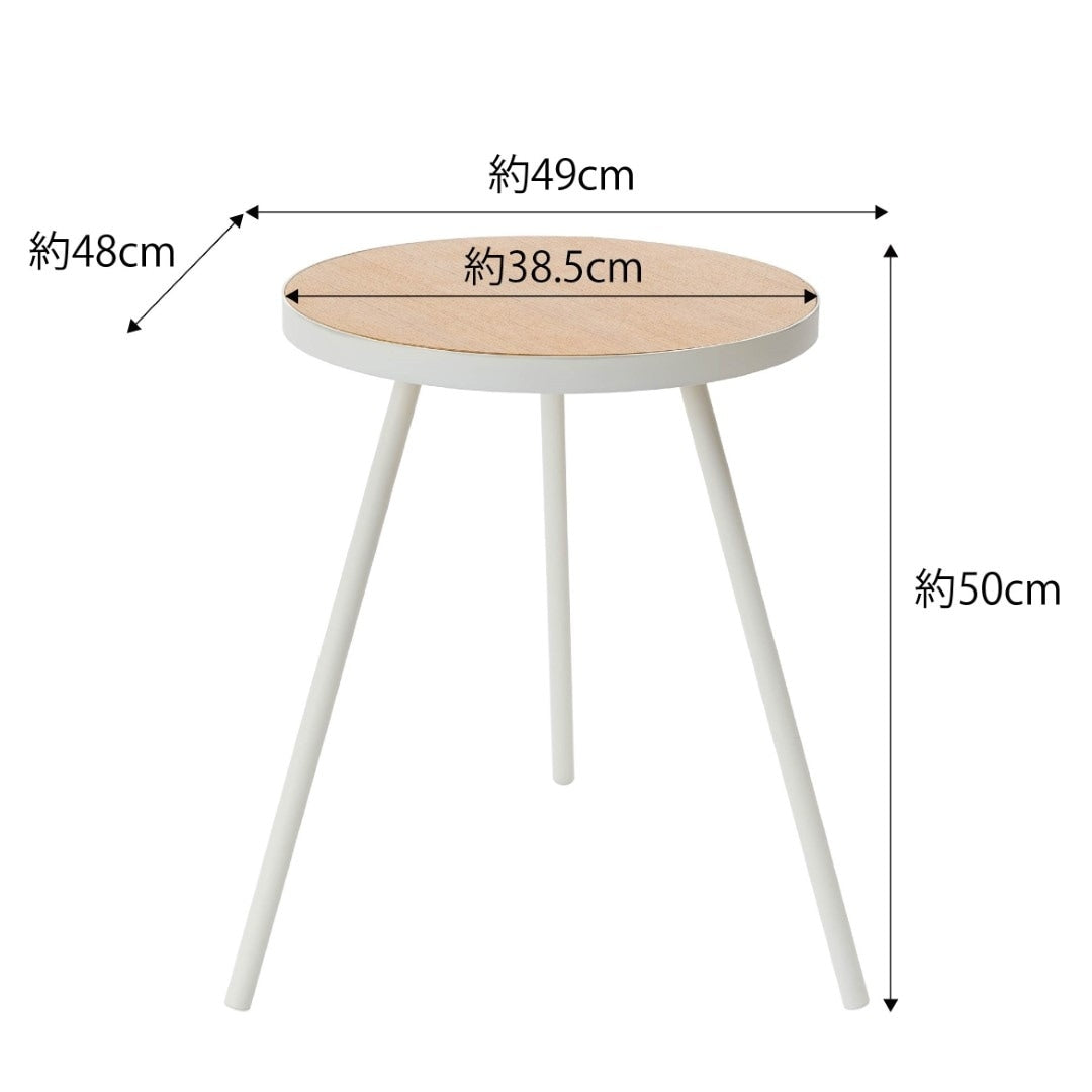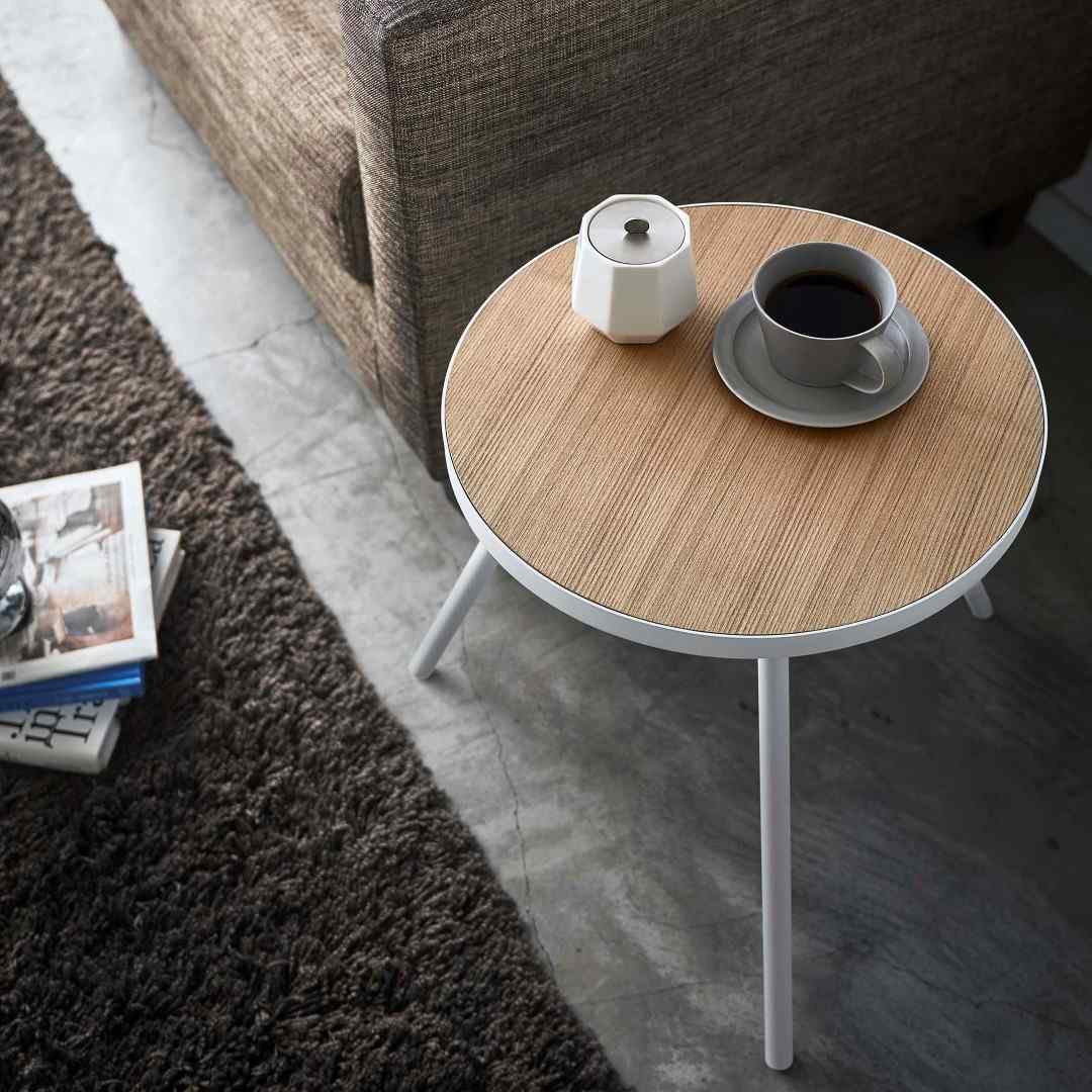 どのお部屋にもあると便利。くつろぎタイムに便利な、サイドテーブル 丸型リビングやベッドルームなど、あらゆる場所で使い勝手のいい丸形のサイドテーブルです。本体はスタイリッシュなスチールを使用し、天板にはあたたかみのある天然木を採用しました。天然木とスチールの相反した素材が互いの魅力をより引き立てます。テーブルを支えるのは、スラリとおしゃれな三本脚。丸い天板が空間に柔らかさを演出します。ソファのそばに設置し、リラックスタイムにコーヒーを置くのに。枕元ではおやすみ前の読書に読んだ本や、スマホを置くのにピッタリです。一時的に出したものはサイドテーブルに置くようにすれば、お部屋も散らからず、お片付けも簡単です。どんなお部屋のインテリアにも合わせやすい2種類のカラーバリエーションカラーは、清潔感のあるホワイトと、高級感のあるブラックをご用意しました。どんなお部屋にも合わせやすいカラーなので、お好みで選んでみてください。