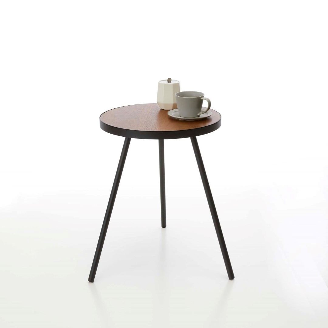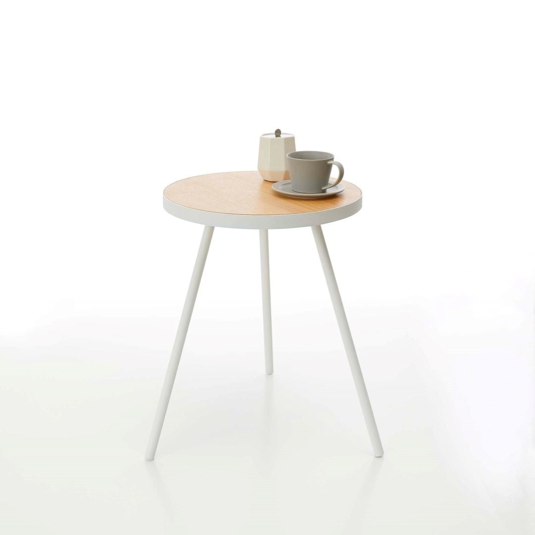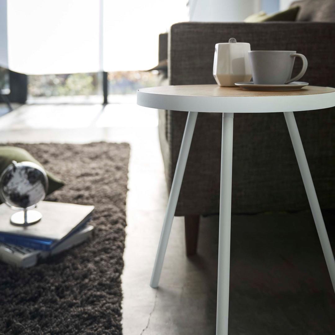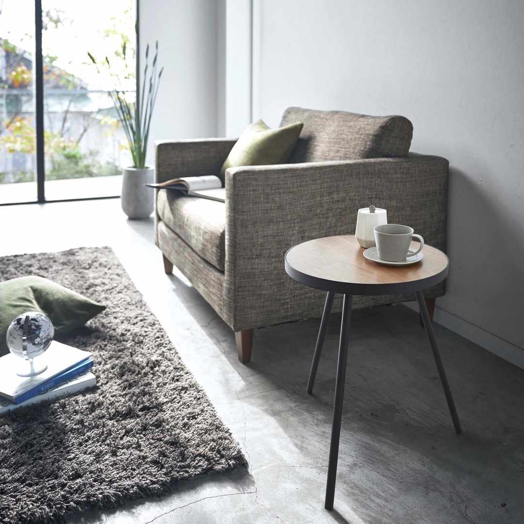 どのお部屋にもあると便利。くつろぎタイムに便利な、サイドテーブル 丸型リビングやベッドルームなど、あらゆる場所で使い勝手のいい丸形のサイドテーブルです。本体はスタイリッシュなスチールを使用し、天板にはあたたかみのある天然木を採用しました。天然木とスチールの相反した素材が互いの魅力をより引き立てます。テーブルを支えるのは、スラリとおしゃれな三本脚。丸い天板が空間に柔らかさを演出します。ソファのそばに設置し、リラックスタイムにコーヒーを置くのに。枕元ではおやすみ前の読書に読んだ本や、スマホを置くのにピッタリです。一時的に出したものはサイドテーブルに置くようにすれば、お部屋も散らからず、お片付けも簡単です。どんなお部屋のインテリアにも合わせやすい2種類のカラーバリエーションカラーは、清潔感のあるホワイトと、高級感のあるブラックをご用意しました。どんなお部屋にも合わせやすいカラーなので、お好みで選んでみてください。