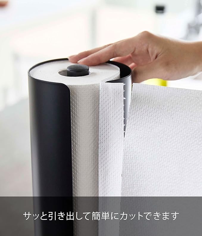 tower 隠せる キッチンペーパーホルダー ブラック 簡単にカット キッチンロールホルダー
