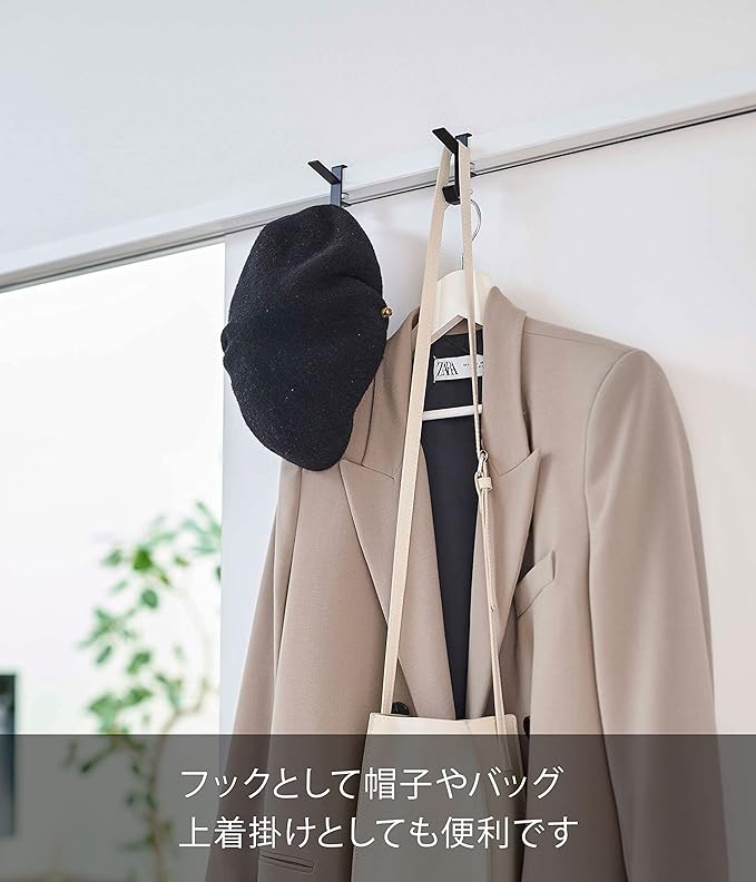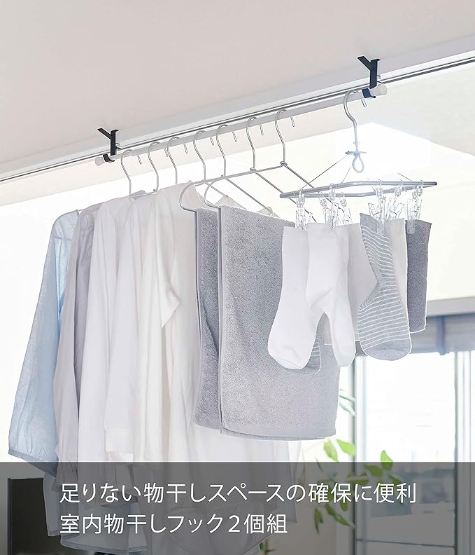 tower 室内物干し フック 2個組 ブラック 鴨居に引っ掛けて ネジ固定 洗濯 物干し
