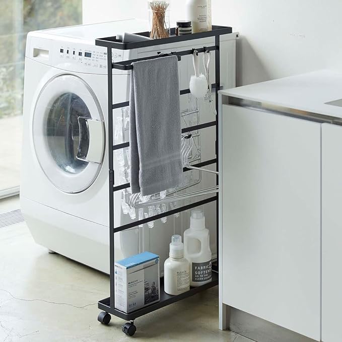tower 洗濯用品 収納ワゴン ブラック スリム ランドリー収納 まとめて収納