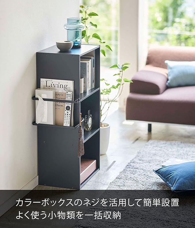 tower カラーボックス横 収納ラック ブラック カラーボックスのネジを活用 収納 小物入れ